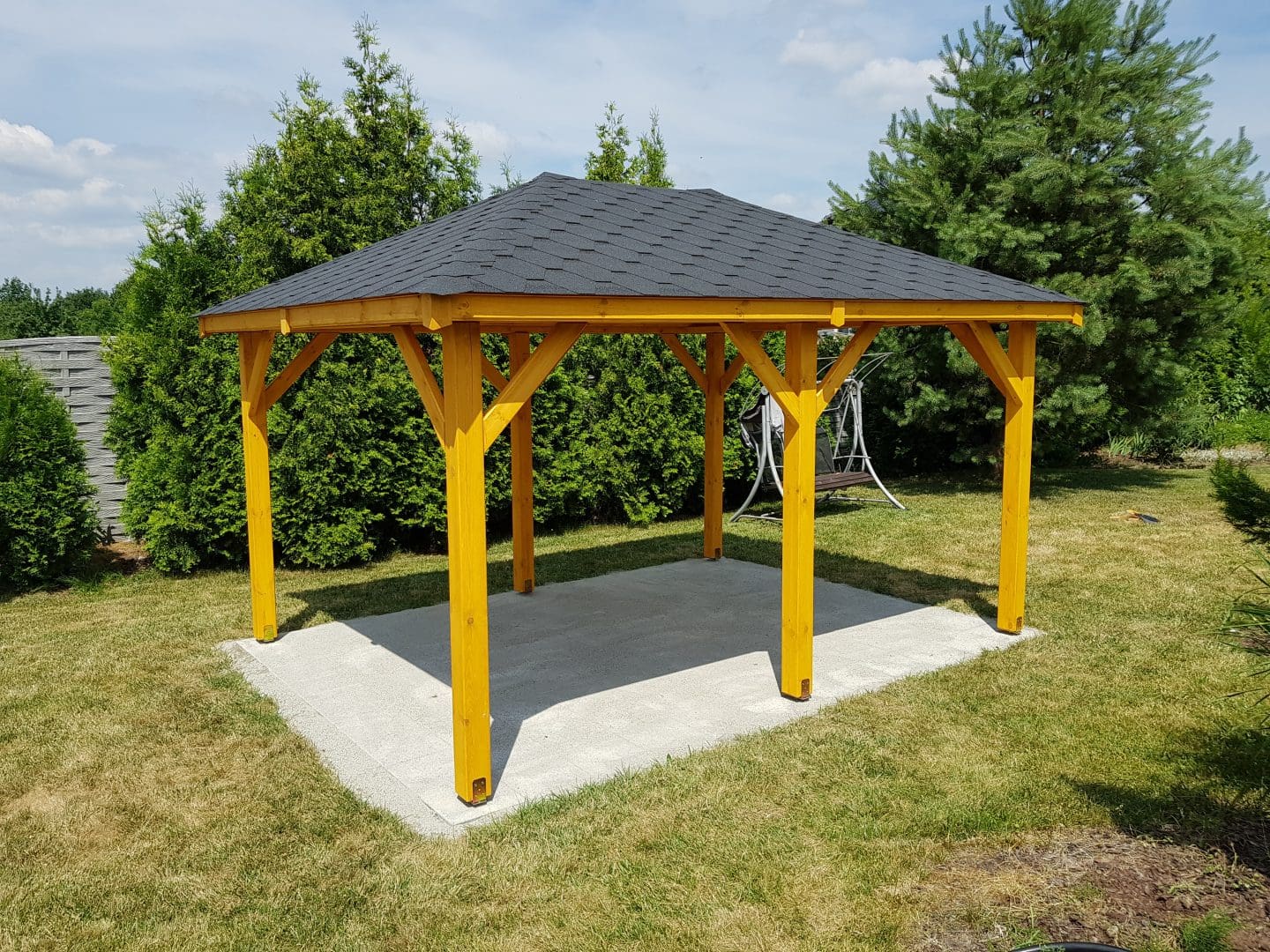 Dziękujemy za zainteresowanie naszą firmą. Mamy do zaoferowania altanę ogrodową o wymiarach 3m x 4m wykonaną z drewna sosnowego. Wszystkie elementy drewniane są staranie szlifowane oraz frezowane. W trosce o klienta oferujemy drewno suszone komorowo. Zapraszamy do zapoznania się z naszą ofertą, a przekonacie się, Państwo że to dobry wybór. Wykonujemy konstrukcje pod wymiar Klienta , altanę można konfigurować w dowolny sposób.