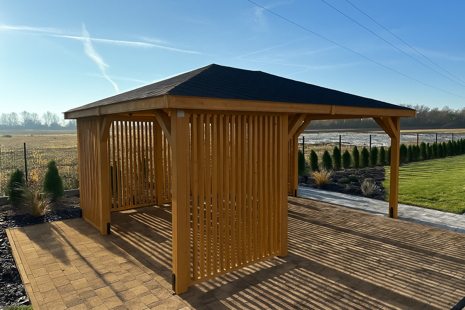 Dziękujemy za zainteresowanie naszą firmą. Mamy do zaoferowania altanę ogrodową o wymiarach 4m x 5m wykonaną z drewna świerkowego. Wszystkie elementy drewniane są staranie szlifowane oraz frezowane. W trosce o klienta oferujemy drewno suszone komorowo. Zapraszamy do zapoznania się z naszą ofertą, a przekonacie się, Państwo że to dobry wybór. Wykonujemy konstrukcje pod wymiar Klienta , altanę można konfigurować w dowolny sposób.
