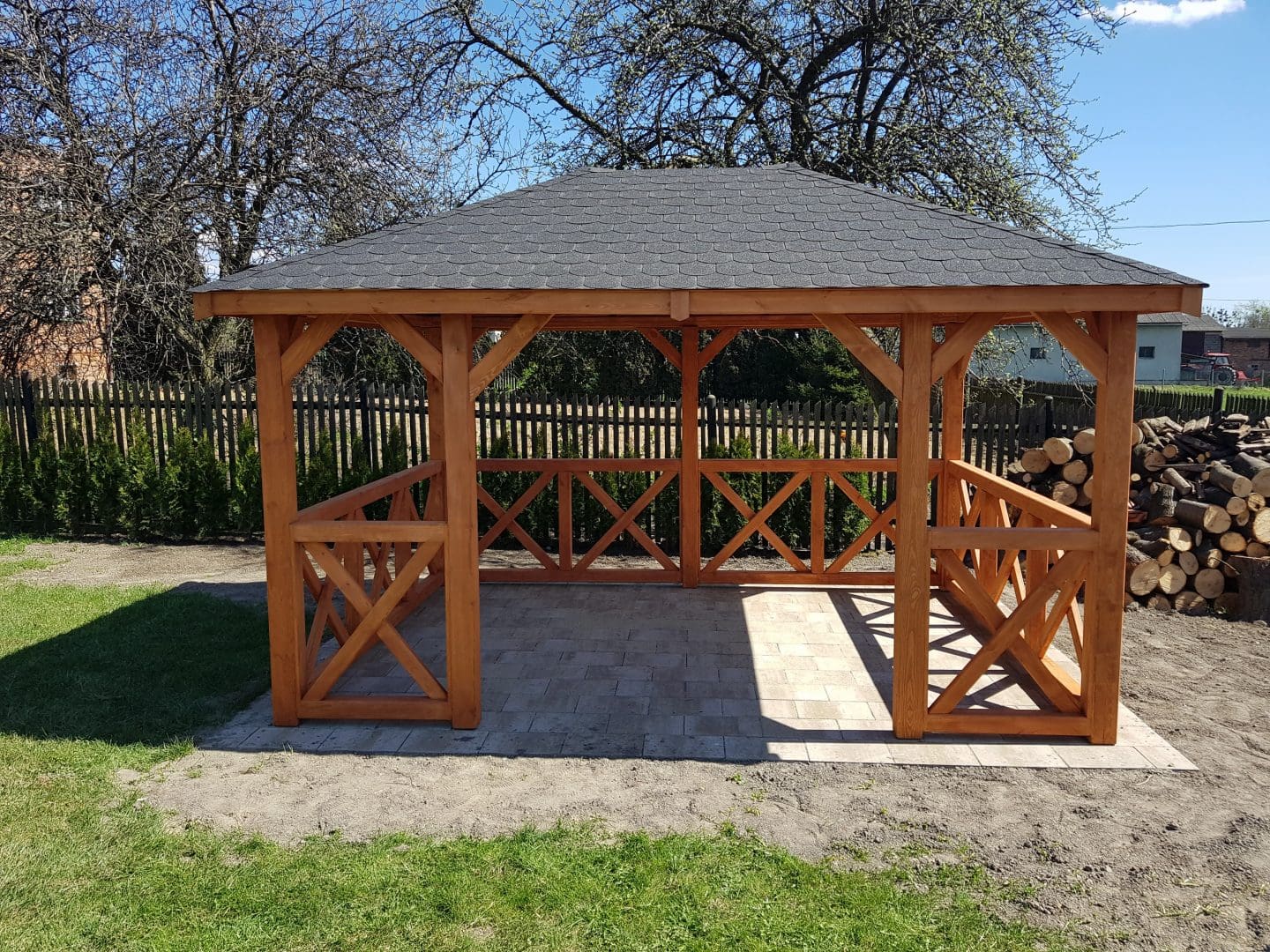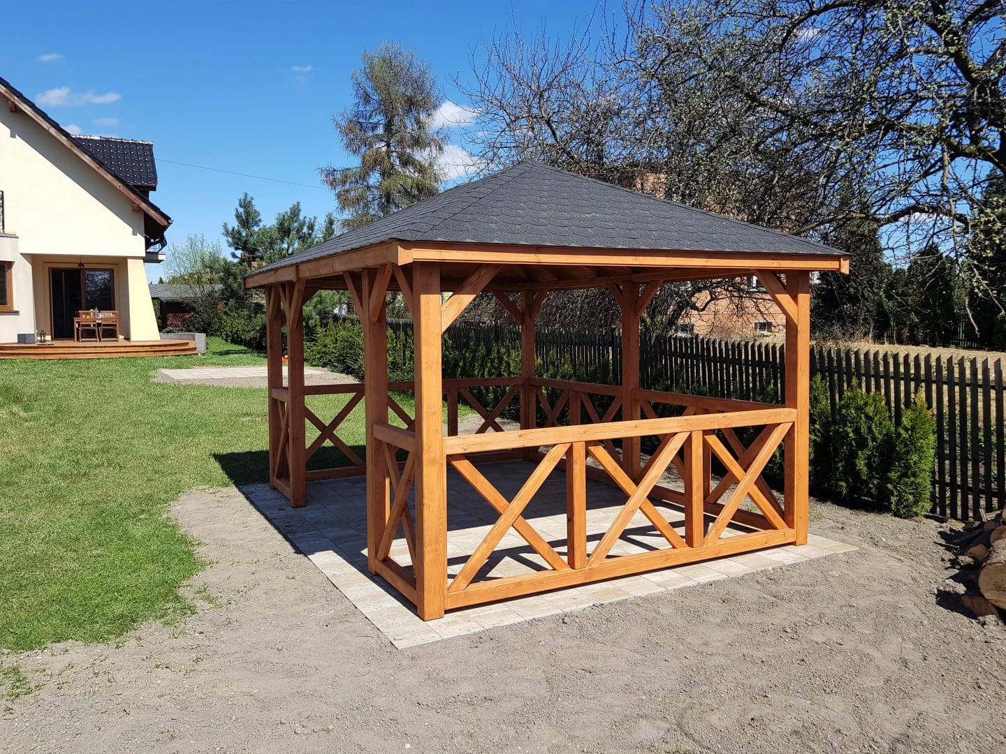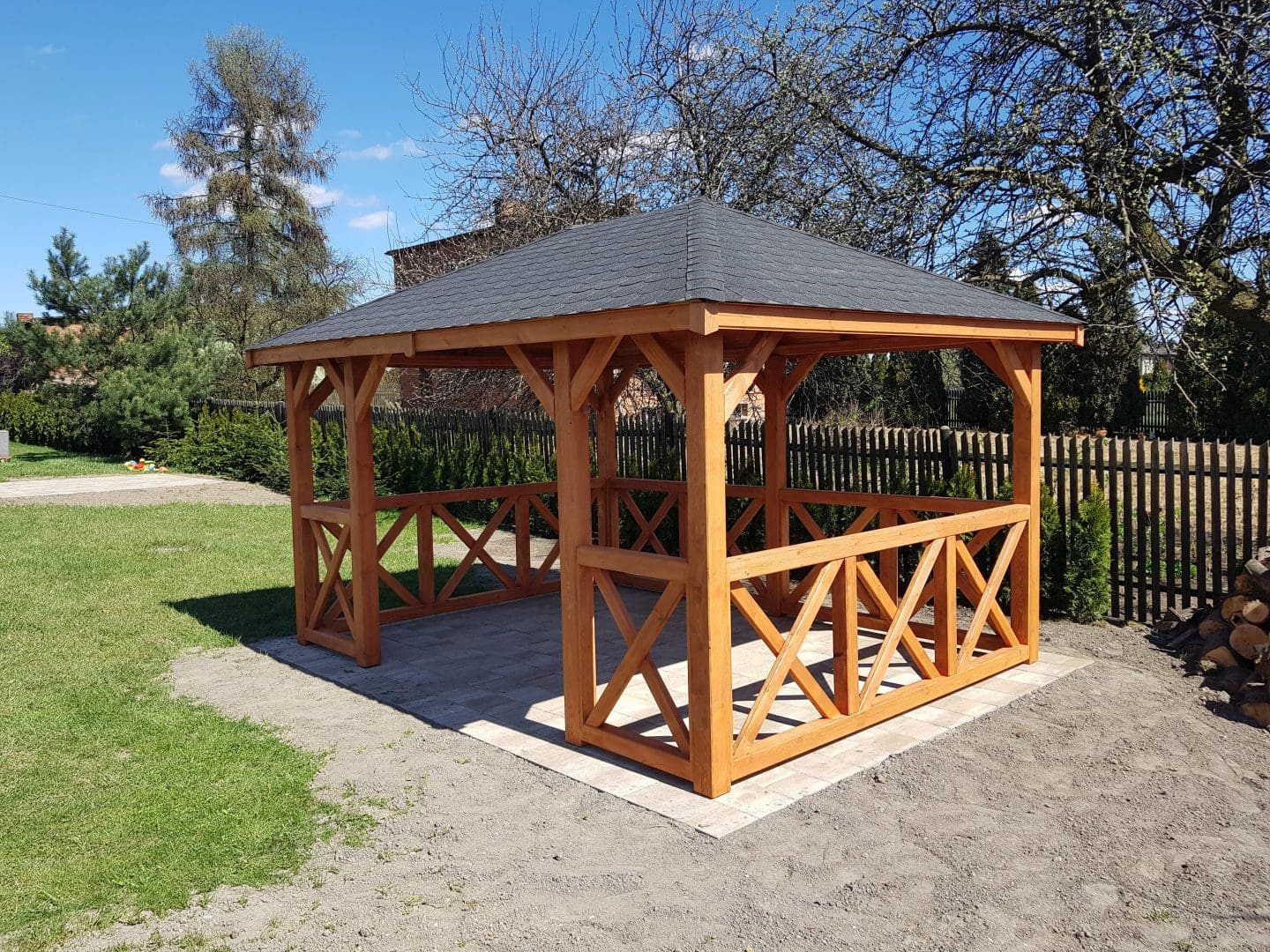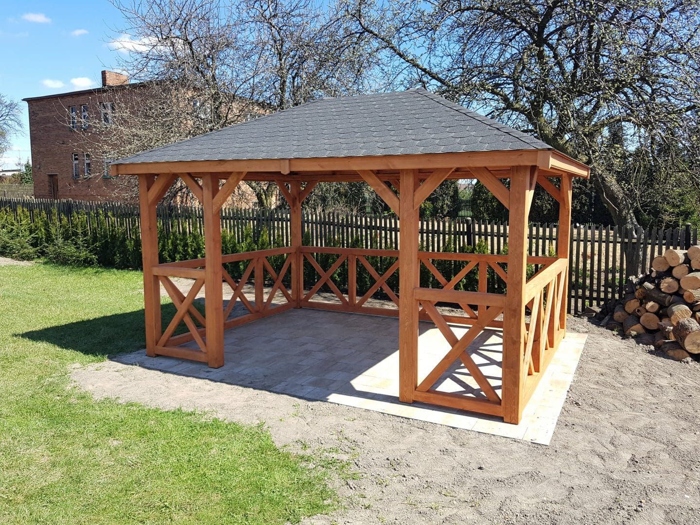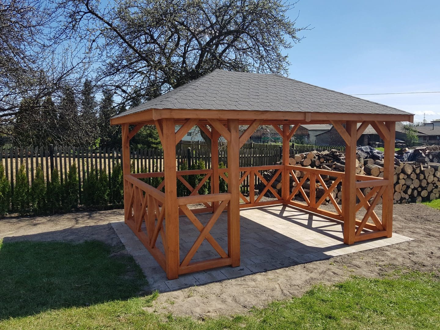 Dziękujemy za zainteresowanie naszą firmą. Mamy do zaoferowania altanę ogrodową o wymiarach 3m x 4m  wykonaną z drewna sosnowego. Wszystkie elementy drewniane są staranie szlifowane oraz frezowane. W trosce o klienta oferujemy drewno suszone komorowo. Zapraszamy do zapoznania się z naszą ofertą, a przekonacie się, Państwo że to dobry wybór. Wykonujemy konstrukcje pod wymiar Klienta , altanę można konfigurować w dowolny sposób.