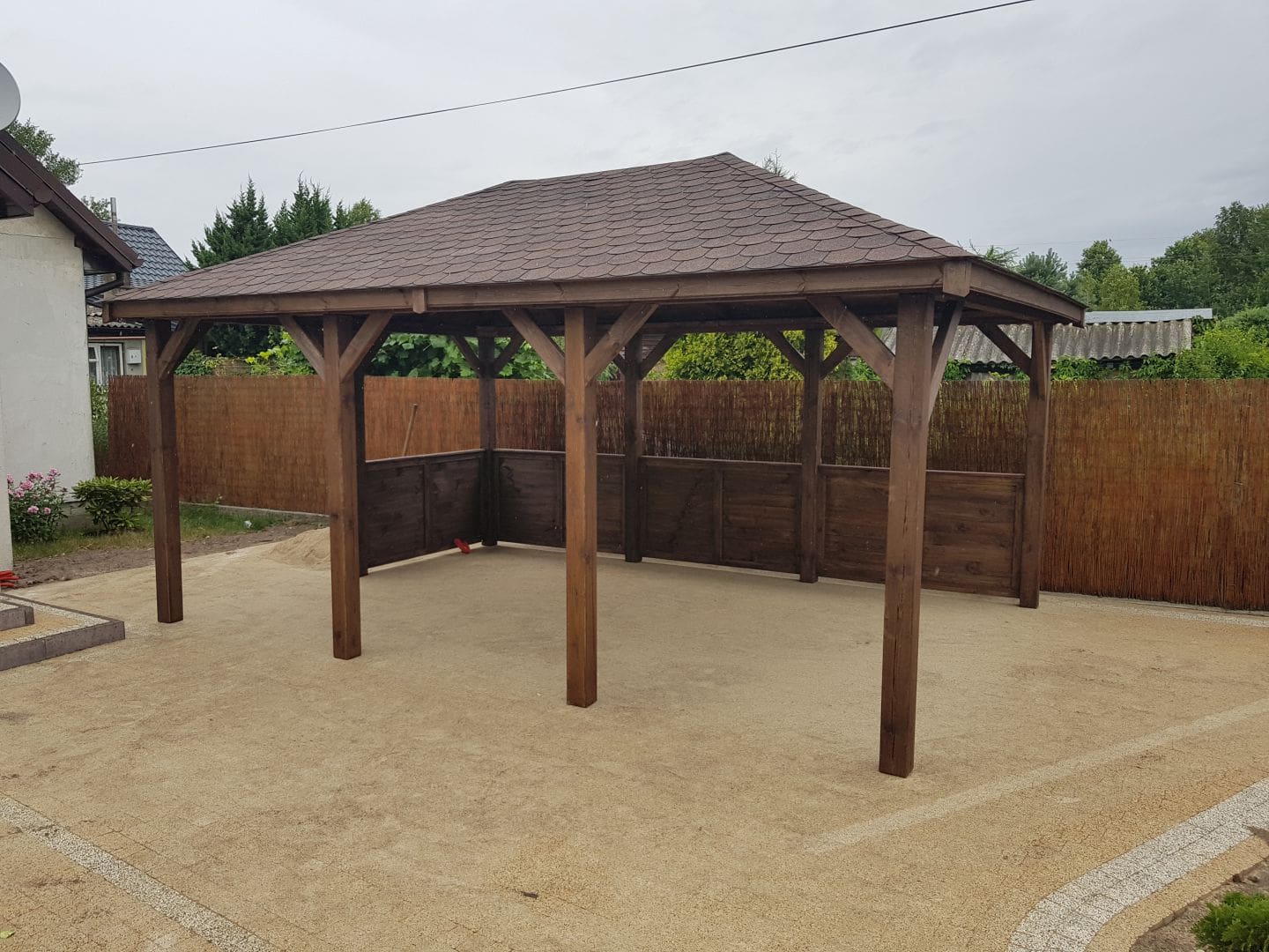 Dziękujemy za zainteresowanie naszą firmą. Mamy do zaoferowania altanę ogrodową o wymiarach 3,5m x 5m wykonaną z drewna sosnowego. Wszystkie elementy drewniane są staranie szlifowane oraz frezowane. W trosce o klienta oferujemy drewno suszone komorowo. Zapraszamy do zapoznania się z naszą ofertą, a przekonacie się, Państwo że to dobry wybór. Wykonujemy konstrukcje pod wymiar Klienta , altanę można konfigurować w dowolny sposób.