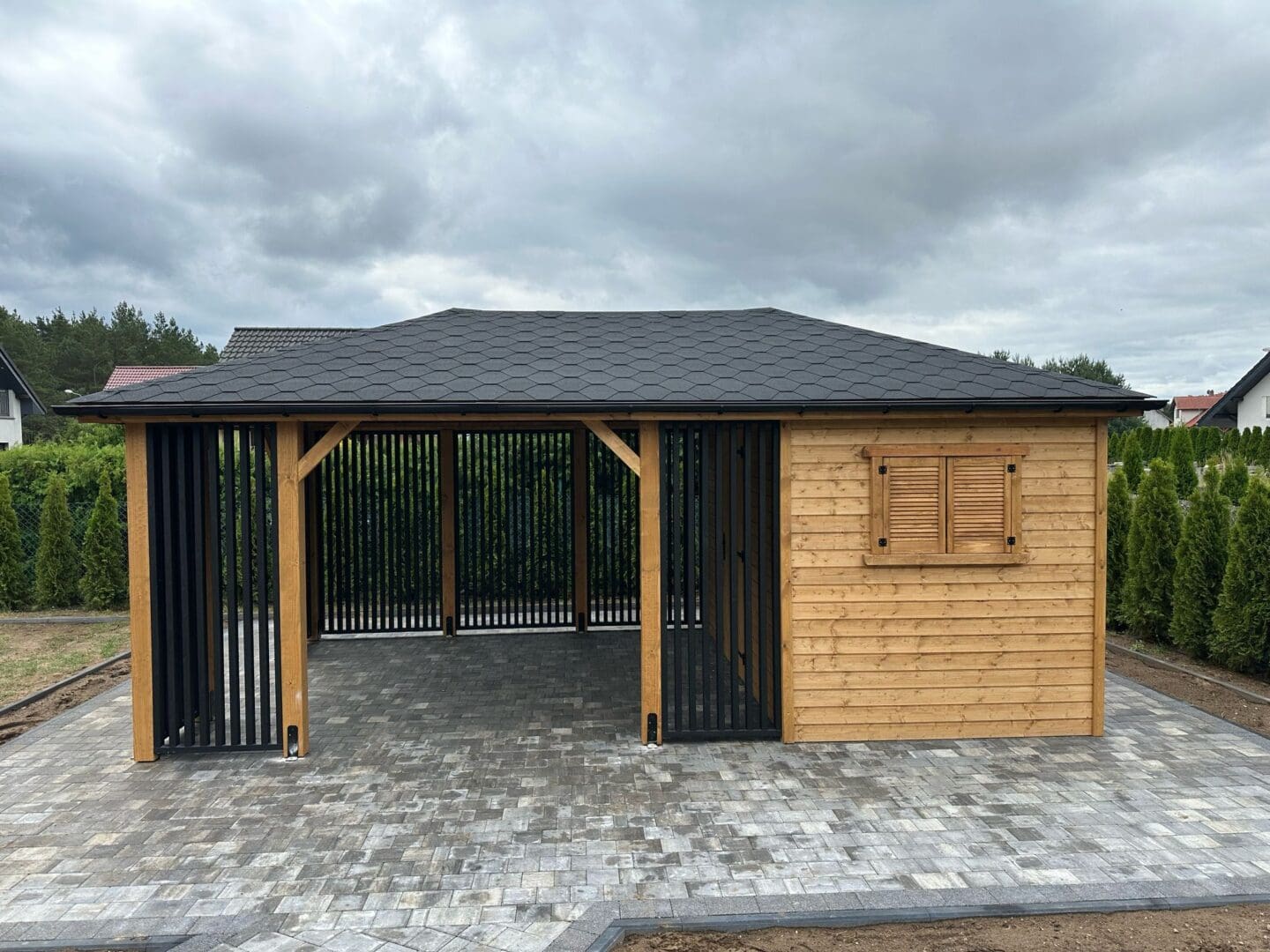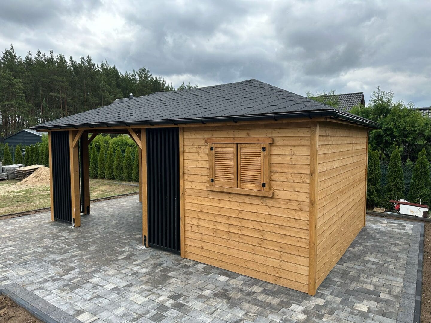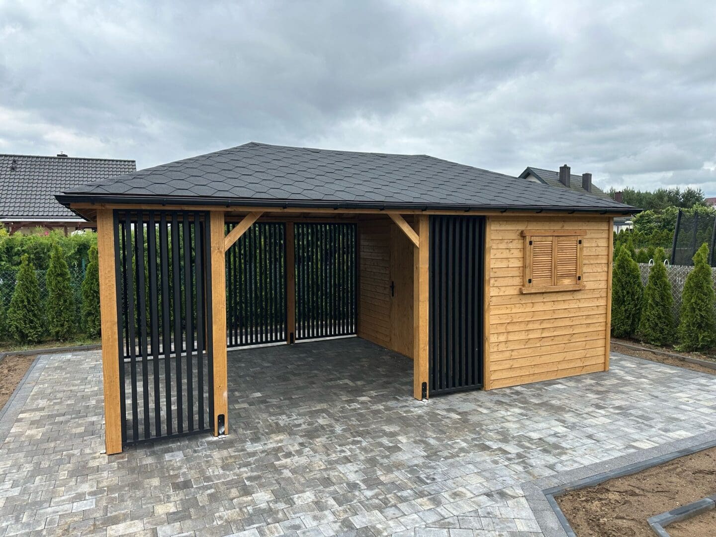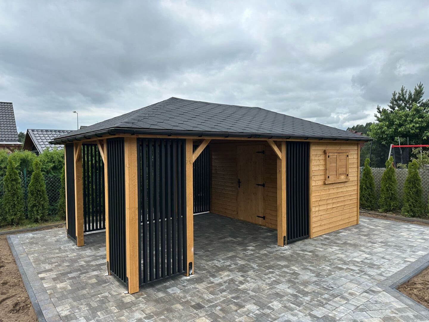 Altana z domkiem narzędziowym ” MACIEK BLACK ” 4m x 6m