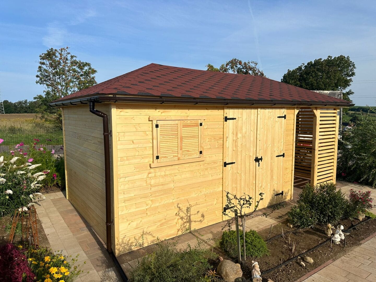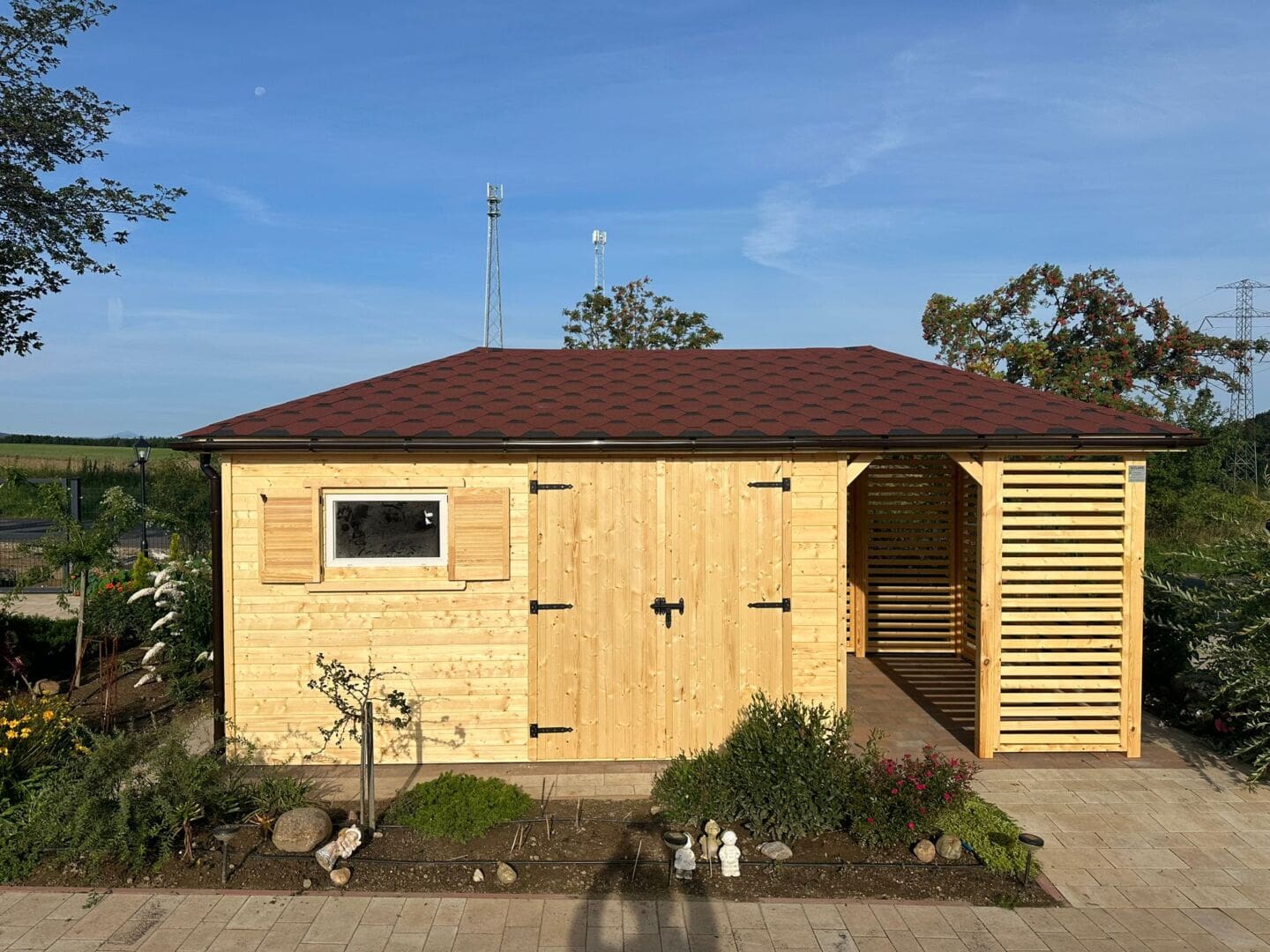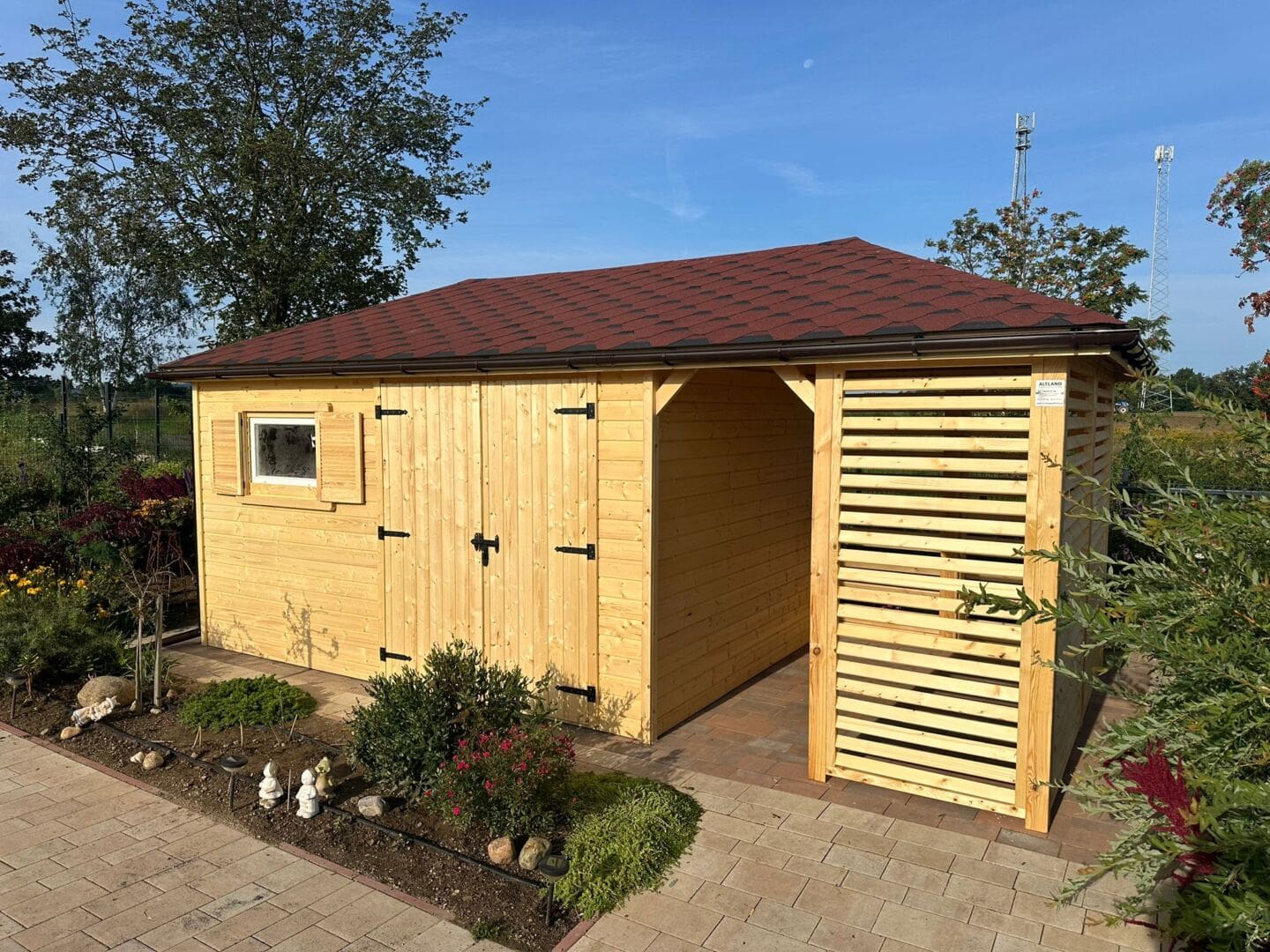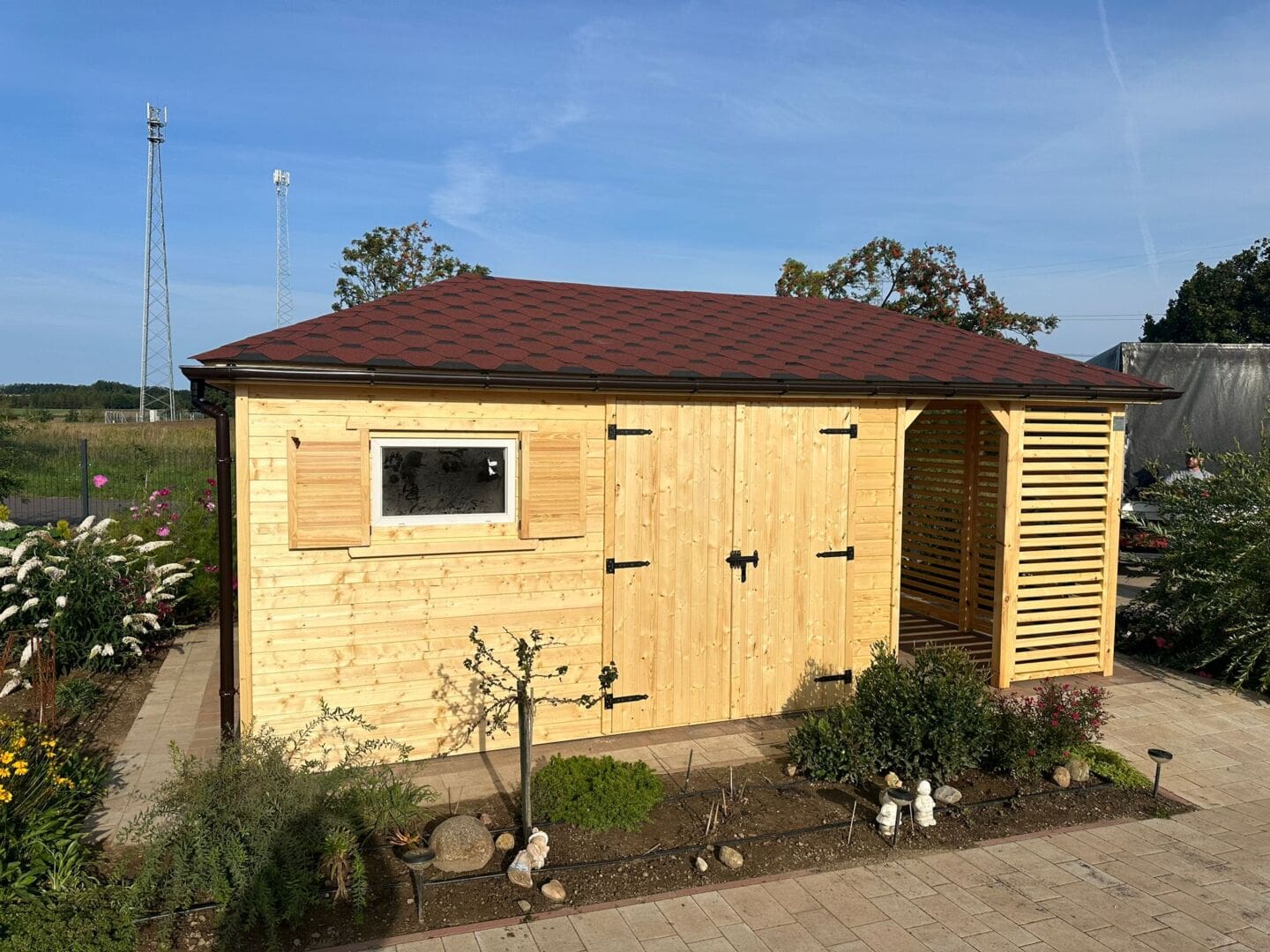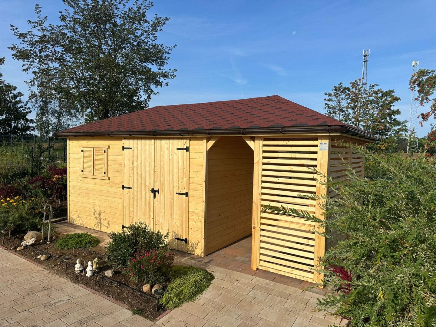 Dziękujemy za zainteresowanie naszą firmą. Mamy do zaoferowania domek narzędziowy z drewutnią o wymiarach – Pomieszczenie gospodarcze 2,5m x 4m + drewutnia 2,5m x 2m wykonaną z drewna świerkowego ( bez podłogi ). Domek posiada wentylacje między ścianami a dachem. Wszystkie elementy drewniane są staranie szlifowane oraz frezowane. W trosce o klienta oferujemy drewno suszone komorowo. Zapraszamy do zapoznania się z naszą ofertą, a przekonacie się, Państwo że to dobry wybór. Wykonujemy konstrukcje pod wymiar Klienta , domek można konfigurować w dowolny sposób. Udzielamy pisemnej gwarancji !!