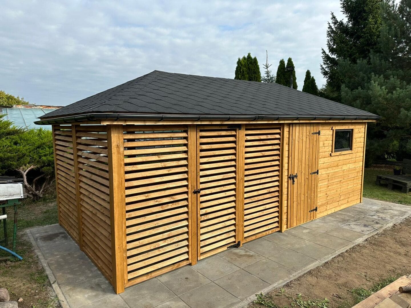 - Ścianki drewutni wykonane z deski