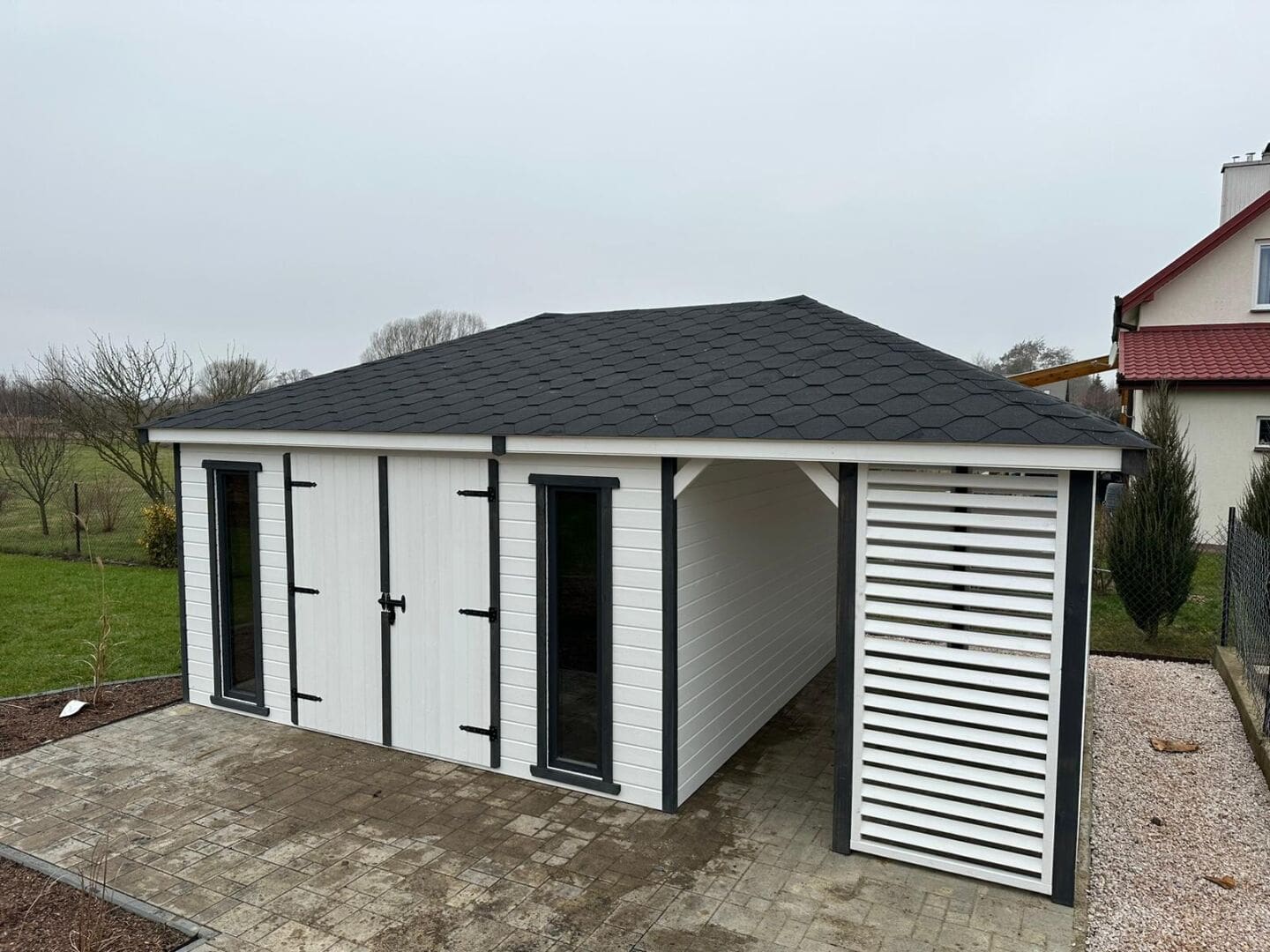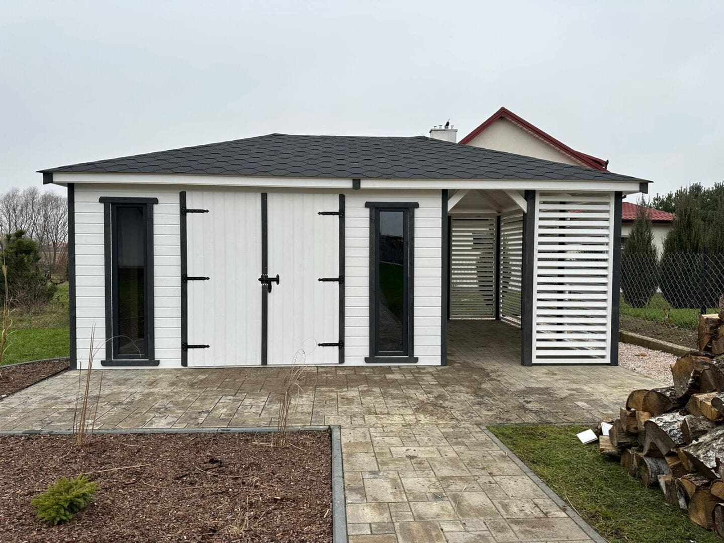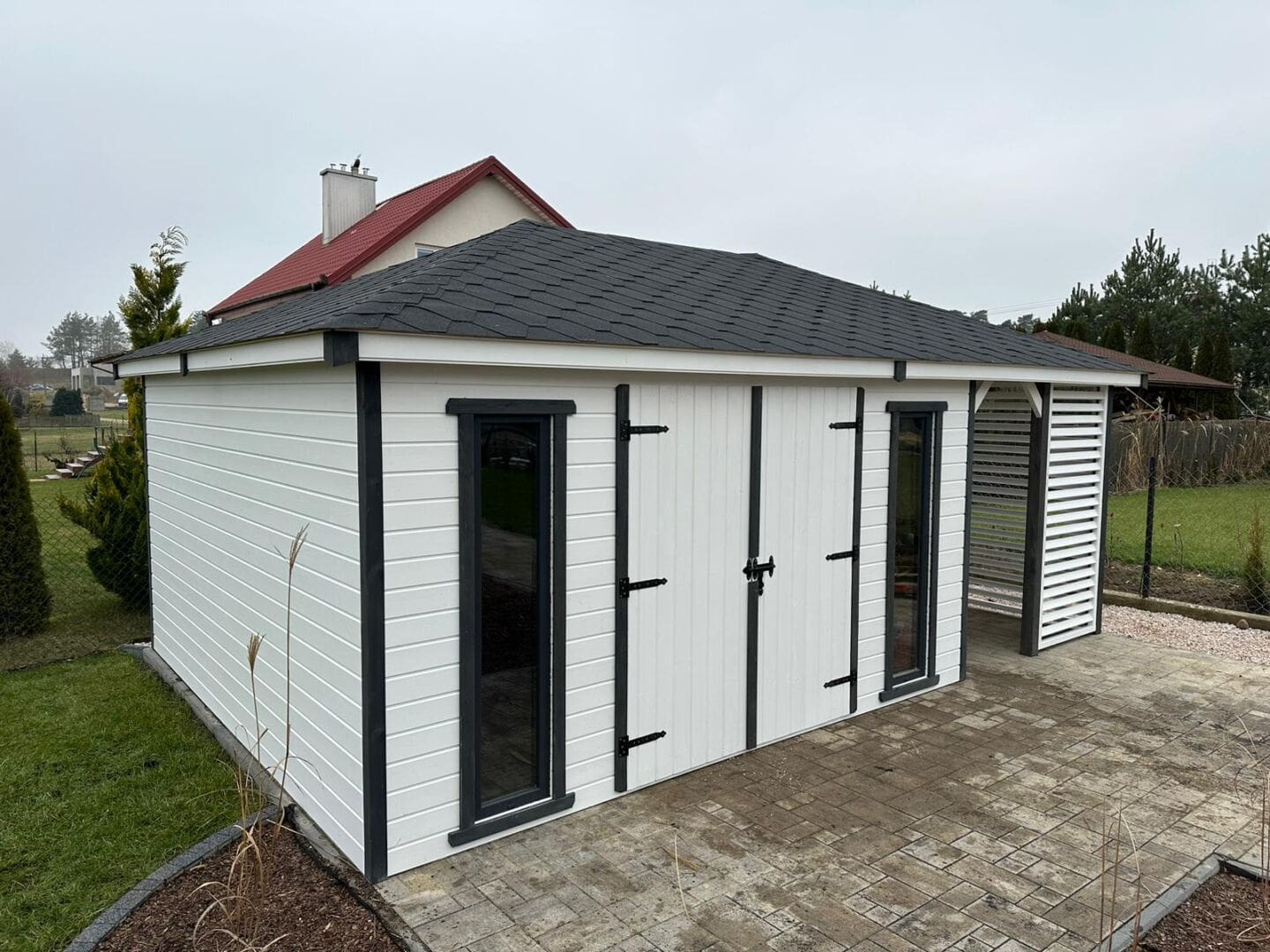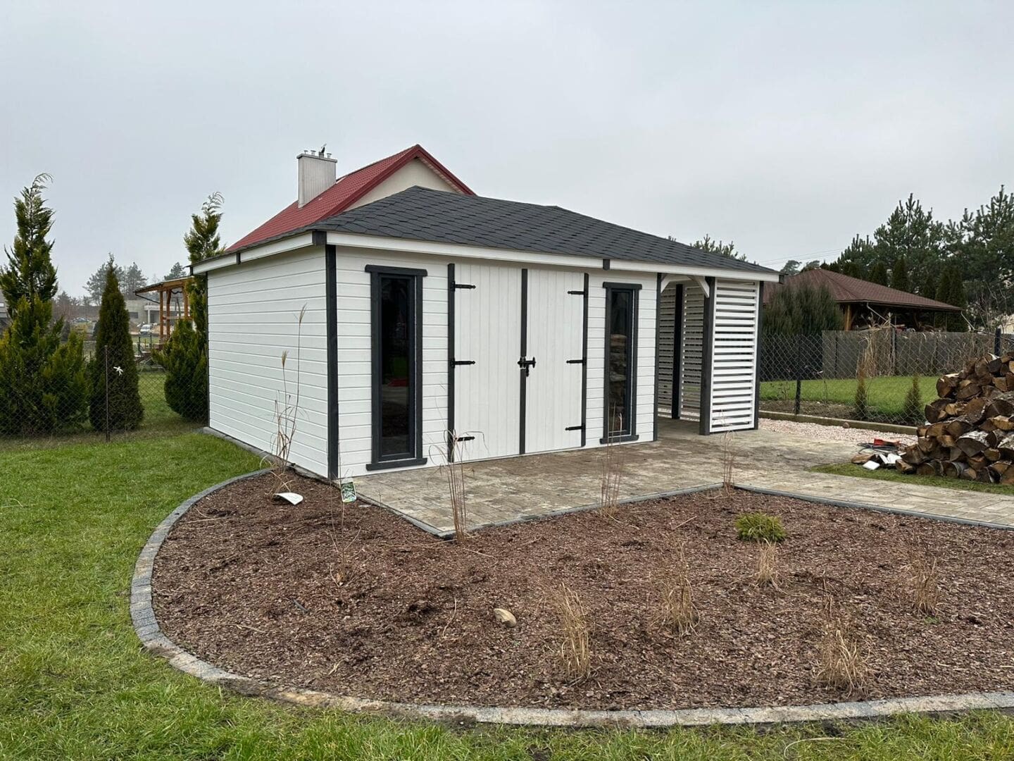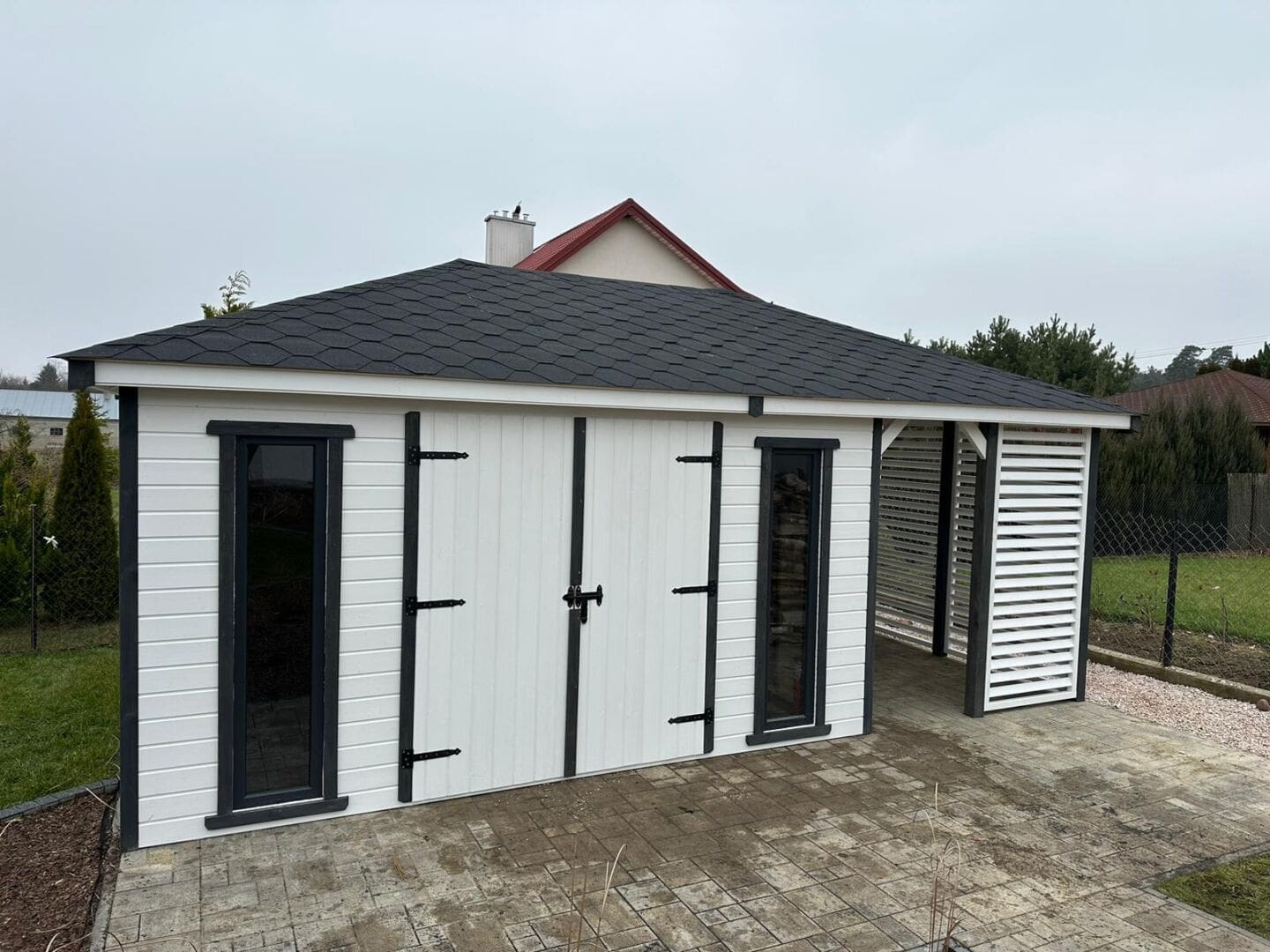 Dziękujemy za zainteresowanie naszą firmą. Mamy do zaoferowania domek narzędziowy z drewutnią o wymiarach – Pomieszczenie gospodarcze 4m x 4m + drewutnia 4m x 2m wykonaną z drewna świerkowego ( bez podłogi ). Domek posiada wentylacje między ścianami a dachem. Wszystkie elementy drewniane są staranie szlifowane oraz frezowane. W trosce o klienta oferujemy drewno suszone komorowo. Zapraszamy do zapoznania się z naszą ofertą, a przekonacie się, Państwo że to dobry wybór. Wykonujemy konstrukcje pod wymiar Klienta , domek można konfigurować w dowolny sposób. Udzielamy pisemnej gwarancji !!