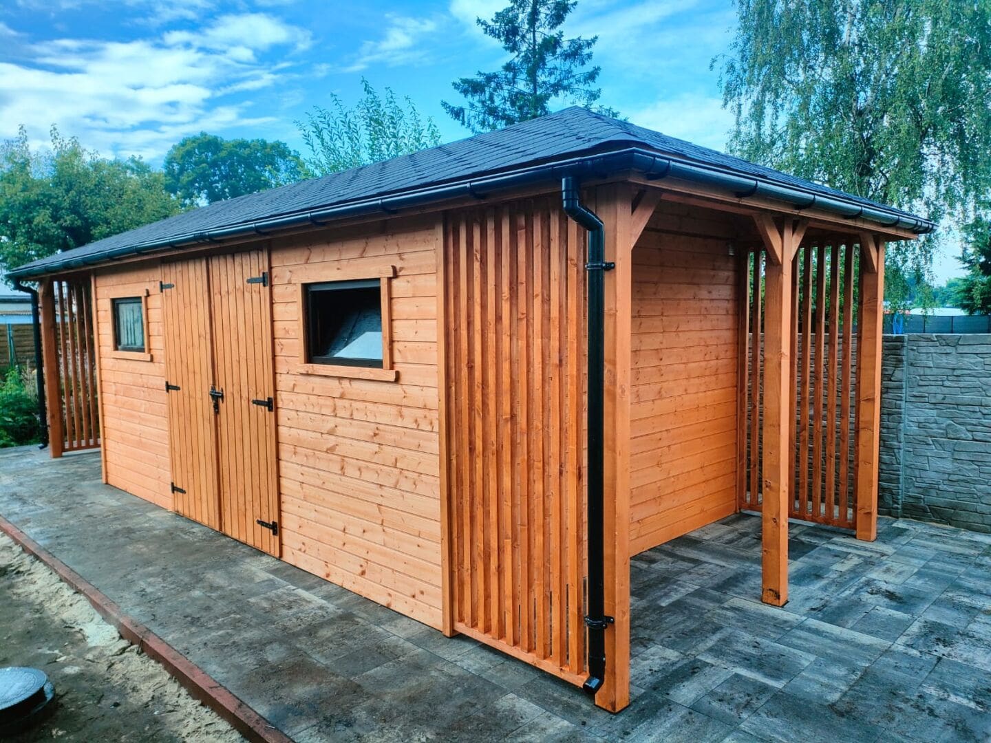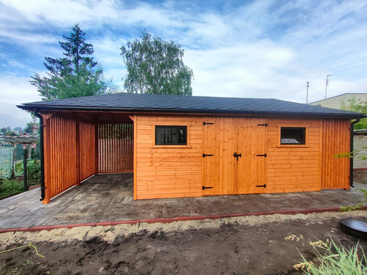 Dziękujemy za zainteresowanie naszą firmą. Mamy do zaoferowania domek narzędziowy z drewutnią o wymiarach – Pomieszczenie gospodarcze 3m x 5m + drewutnia 3m x 2m / 3m x 1m wykonaną z drewna świerkowego ( bez podłogi ). Domek posiada wentylacje między ścianami a dachem. Wszystkie elementy drewniane są staranie szlifowanę oraz frezowane. W trosce o klienta oferujemy drewno suszone komorowo. Zapraszamy do zapoznania się z naszą ofertą, a przekonacie się, Państwo że to dobry wybór. Wykonujemy konstrukcje pod wymiar Klienta , domek można konfigurować w dowolny sposób. Udzielamy pisemnej gwarancji !!