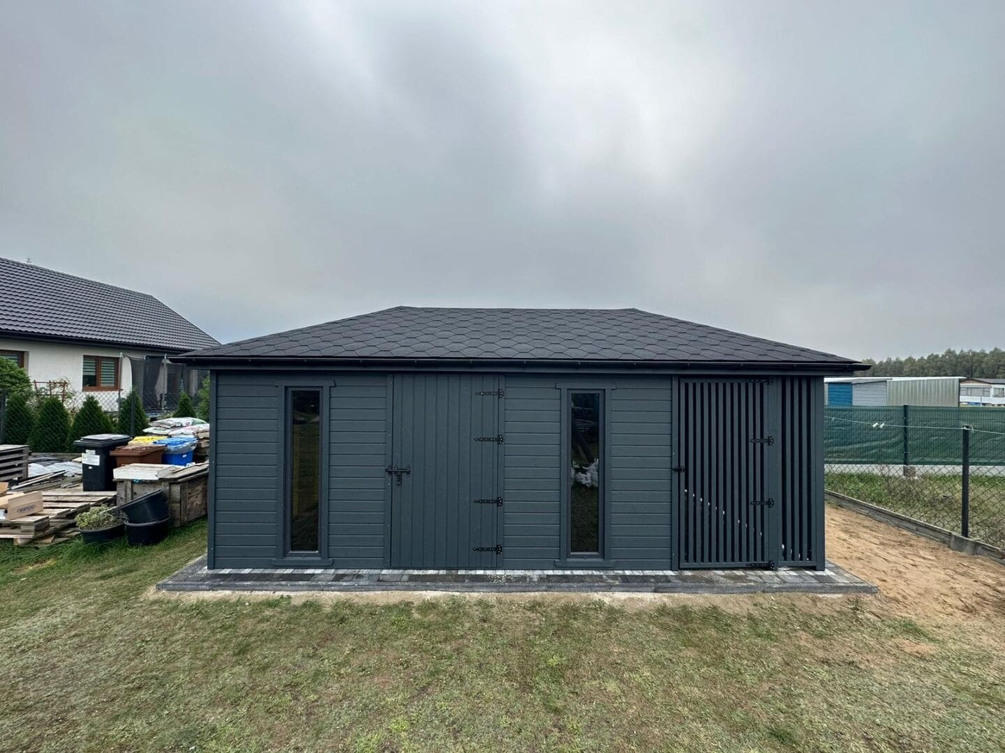 Dziękujemy za zainteresowanie naszą firmą. Mamy do zaoferowania domek narzędziowy z drewutnią o wymiarach – Pomieszczenie gospodarcze 3m x 4,5m + drewutnia 3m x 1,5m wykonaną z drewna świerkowego ( bez podłogi ). Domek posiada wentylacje między ścianami a dachem. Wszystkie elementy drewniane są staranie szlifowane oraz frezowane. W trosce o klienta oferujemy drewno suszone komorowo. Zapraszamy do zapoznania się z naszą ofertą, a przekonacie się, Państwo że to dobry wybór. Wykonujemy konstrukcje pod wymiar Klienta , domek można konfigurować w dowolny sposób. Udzielamy pisemnej gwarancji.