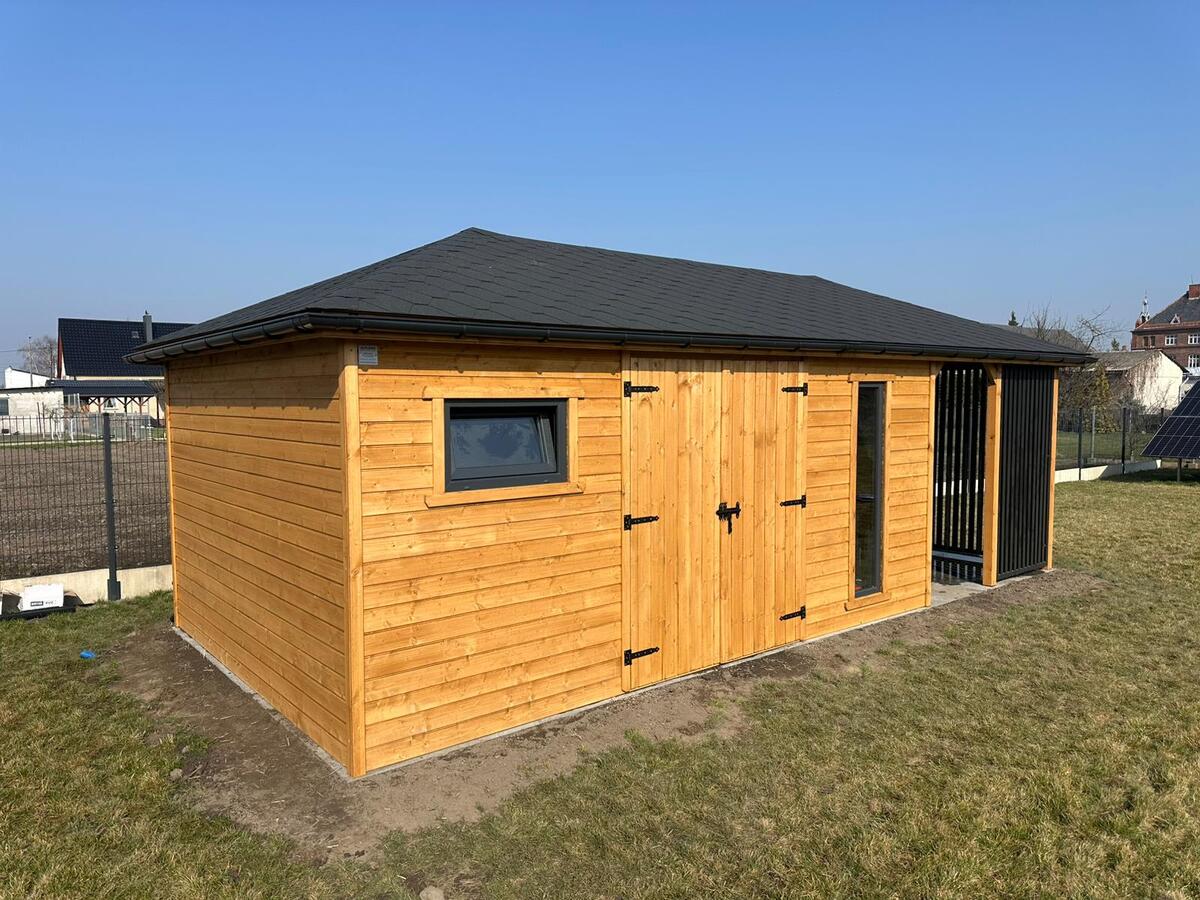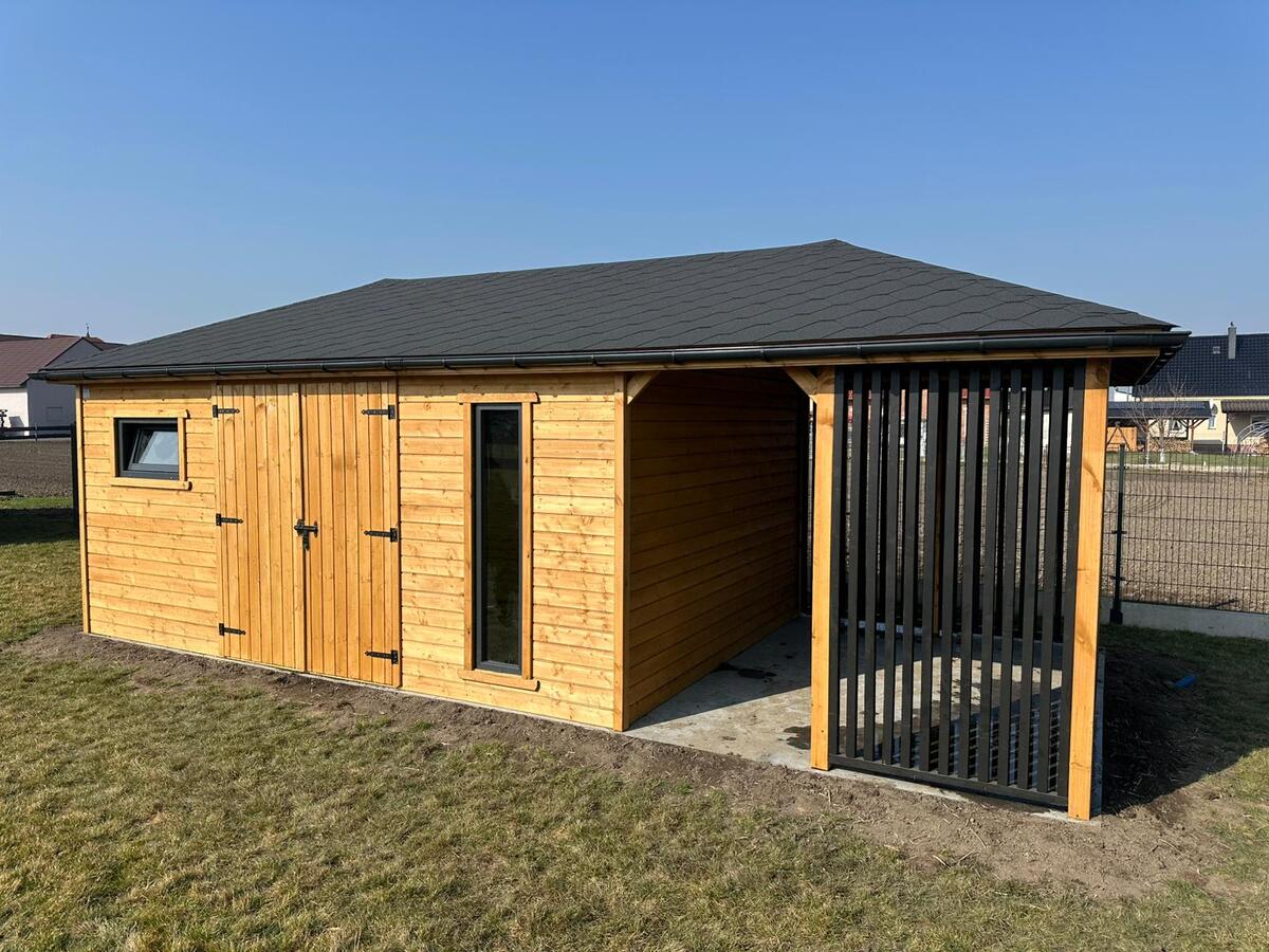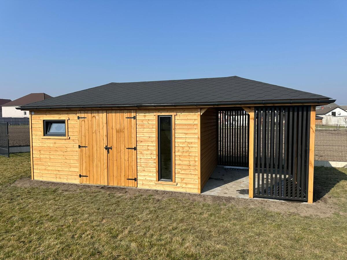 Domek narzędziowy MACIEK PREMIUM BLACK 3×7,5 m to solidna nowoczesna konstrukcja drewniana wykonana z certyfikowanego drewna świerkowego suszonego komorowo. W skład zestawu wchodzi pomieszczenie gospodarcze o wymiarach 3×5 m oraz drewutnia 3×2,5 m (bez podłogi). Model ten stanowi jedną z dostępnych konfiguracji – każdy domek wykonujemy na indywidualne zamówienie, dopasowując projekt do potrzeb klienta.