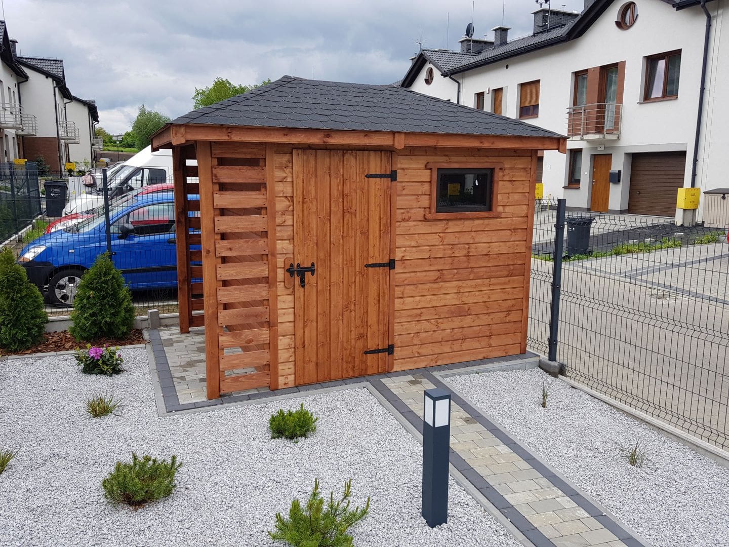 Dziękujemy za zainteresowanie naszą firmą. Mamy do zaoferowania domek narzędziowy z drewutnią o wymiarach – Pomieszczenie gospodarcze 2m x 2,5m + drewutnia 2m x 0,5m wykonaną z drewna sosnowego ( bez podłogi ). Domek posiada wentylacje między ścianami a dachem. Wszystkie elementy drewniane są staranie szlifowane oraz frezowane. W trosce o klienta oferujemy drewno suszone komorowo. Zapraszamy do zapoznania się z naszą ofertą, a przekonacie się, Państwo że to dobry wybór. Wykonujemy konstrukcje pod wymiar Klienta , domek można konfigurować w dowolny sposób. Udzielamy pisemnej gwarancji.
