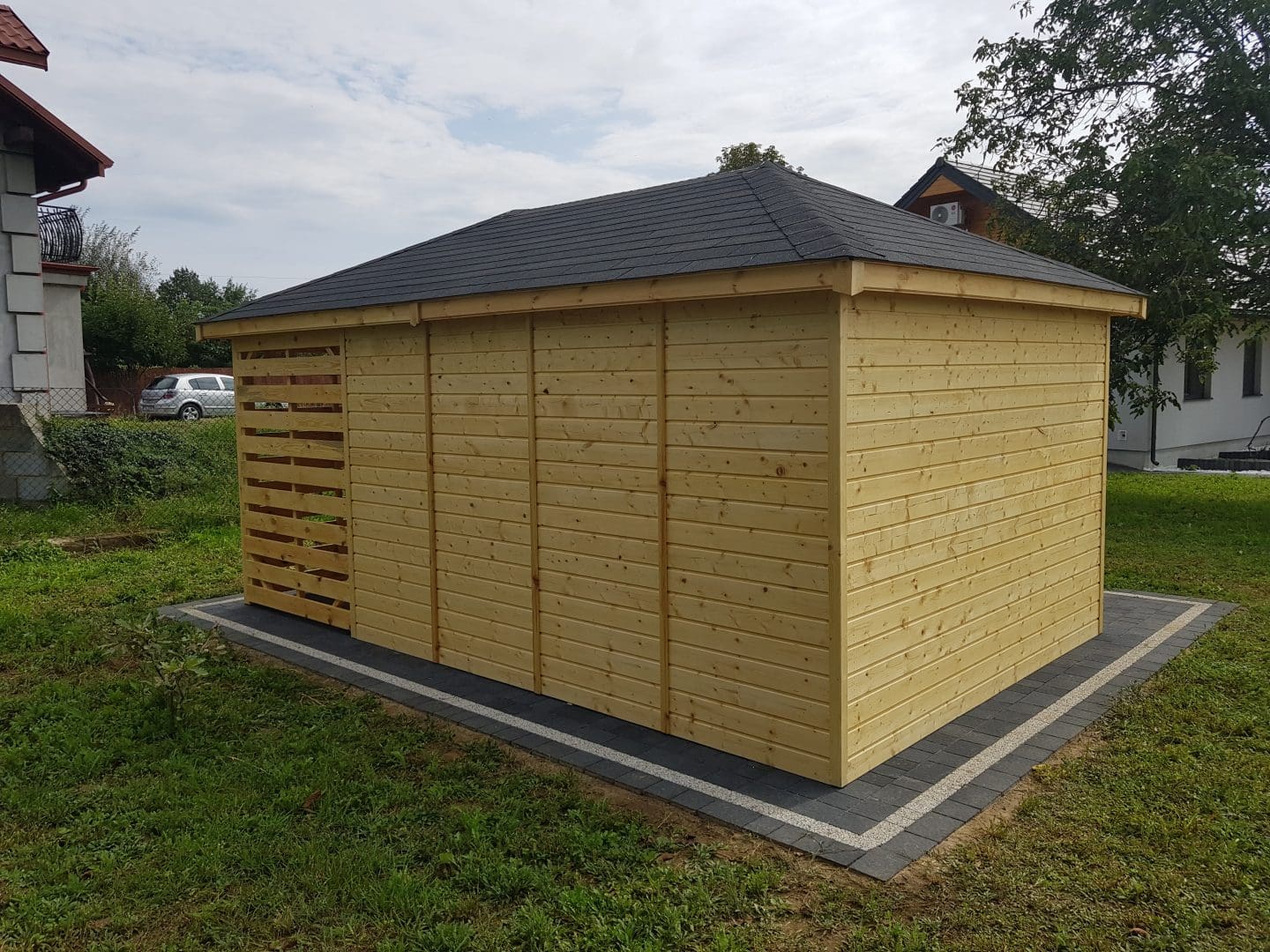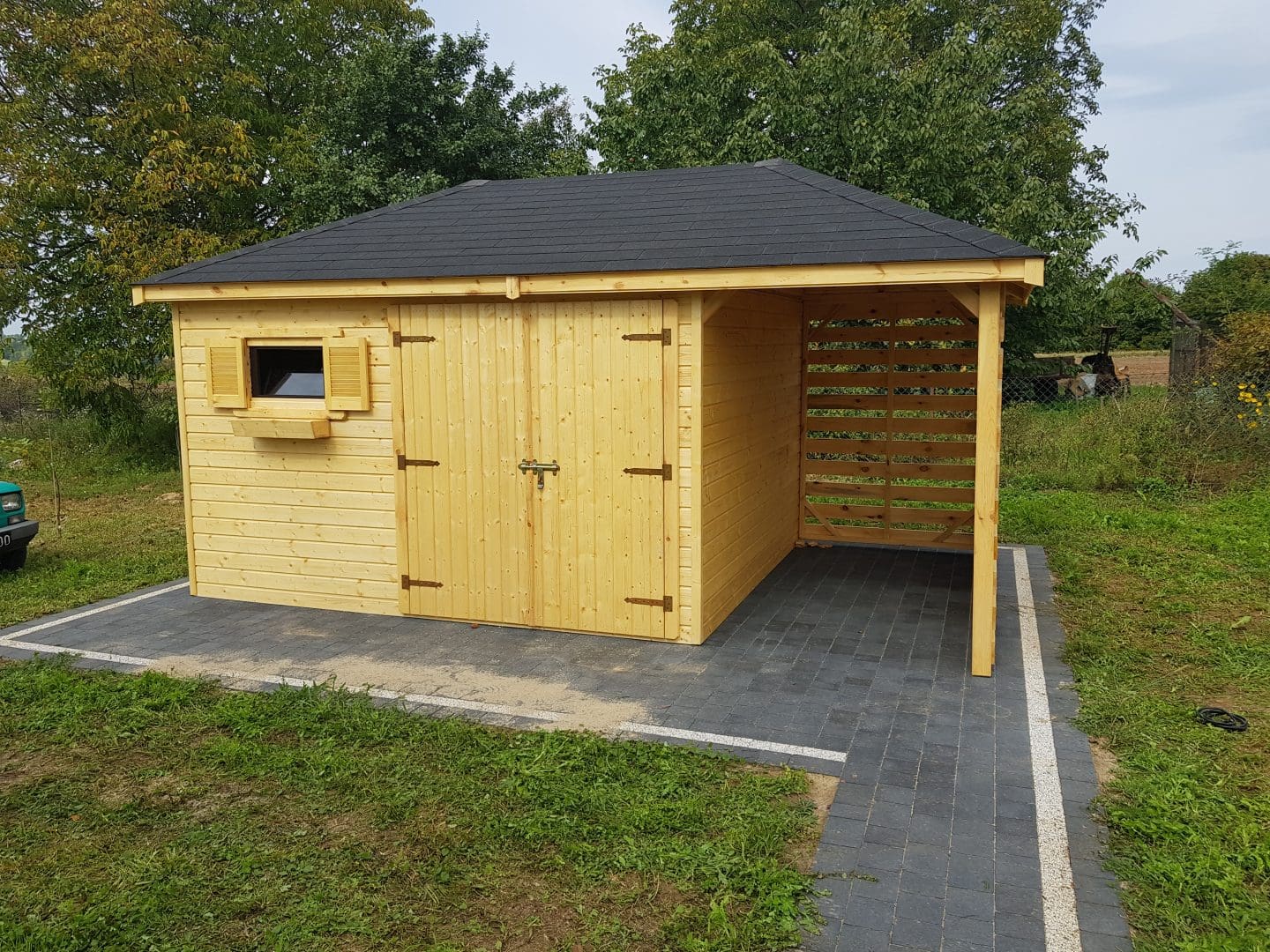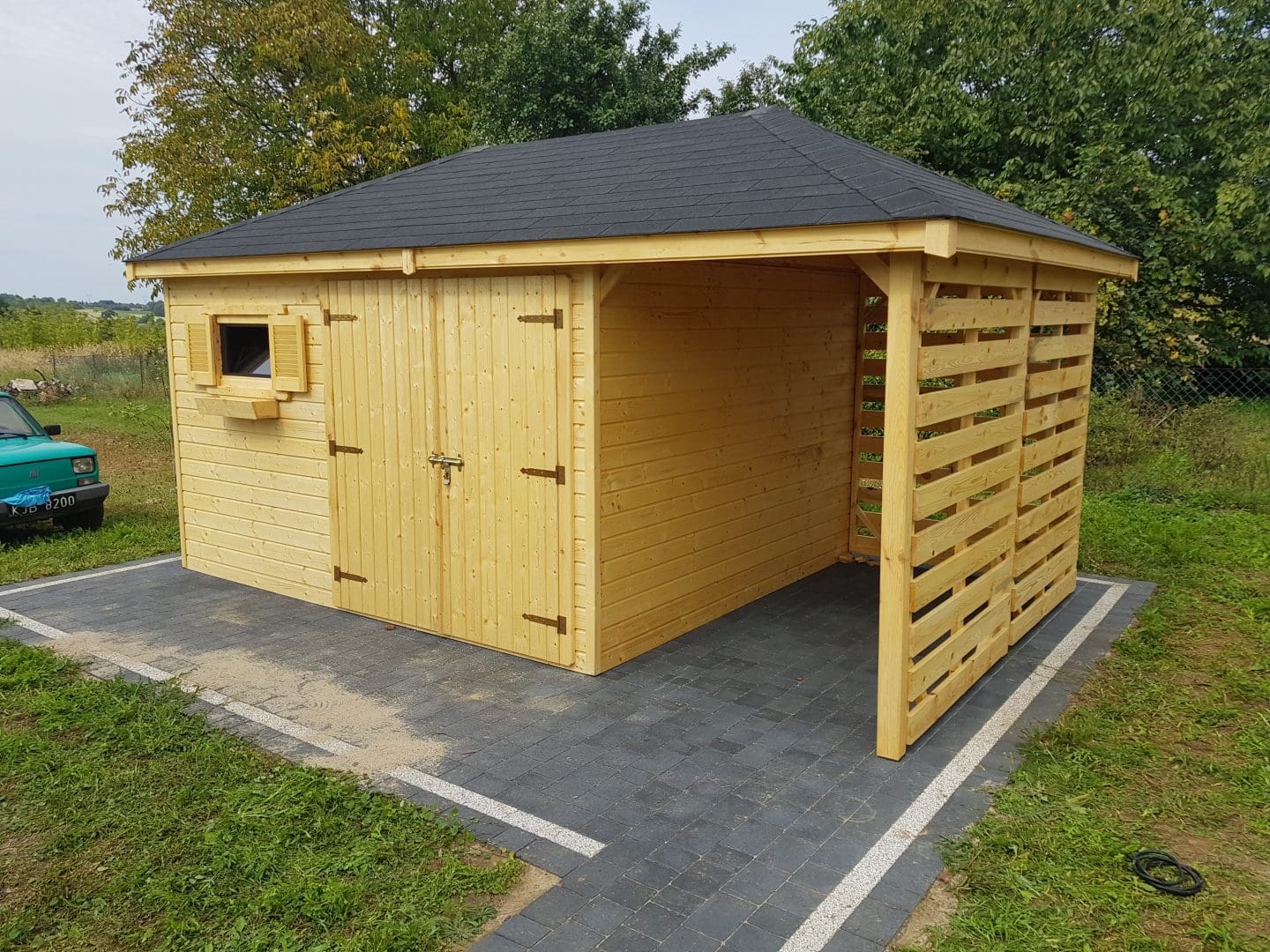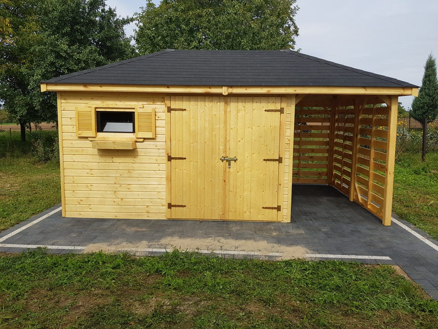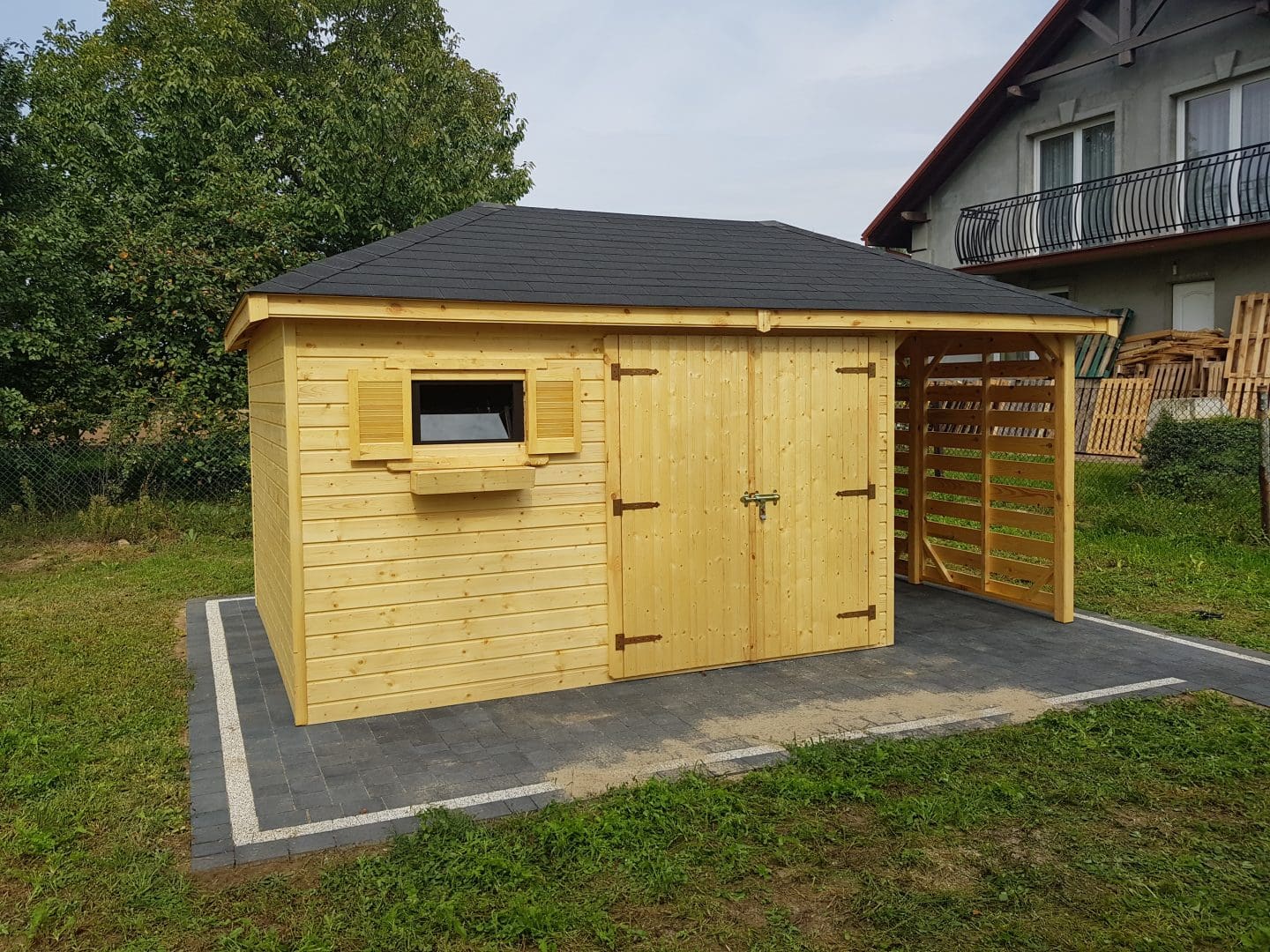 Dziękujemy za zainteresowanie naszą firmą. Mamy do zaoferowania domek narzędziowy z drewutnią o wymiarach – Pomieszczenie gospodarcze 3m x 3,5m + drewutnia 3m x 1,5m wykonaną z drewna sosnowego ( bez podłogi ). Domek posiada wentylacje między ścianami a dachem. Wszystkie elementy drewniane są staranie szlifowanę oraz frezowane. W trosce o klienta oferujemy drewno suszone komorowo. Zapraszamy do zapoznania się z naszą ofertą, a przekonacie się, Państwo że to dobry wybór. Wykonujemy konstrukcje pod wymiar Klienta , domek można konfigurować w dowolny sposób. Udzielamy pisemnej gwarancji.