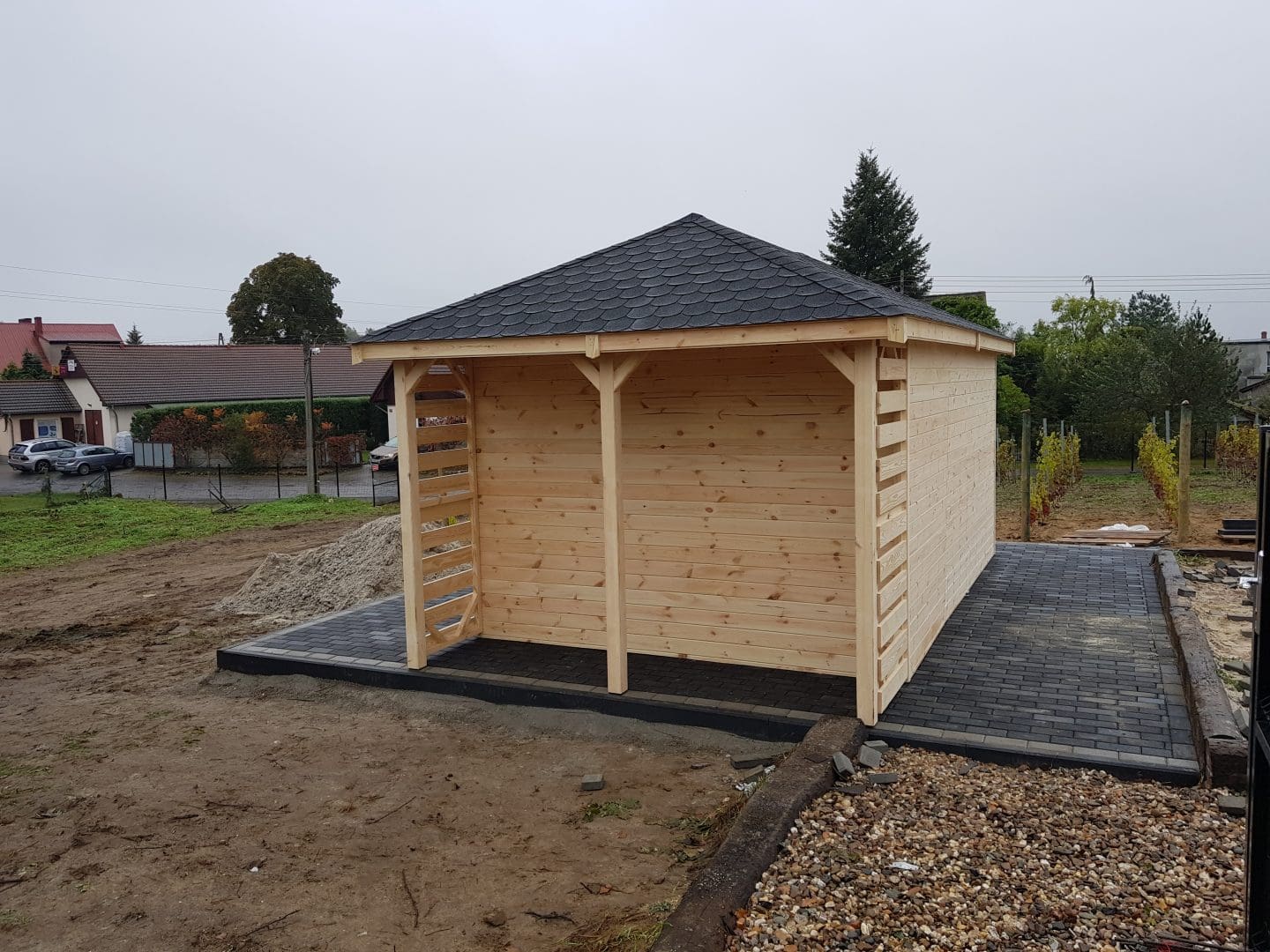 - Ścianki drewutni wykonane z deski