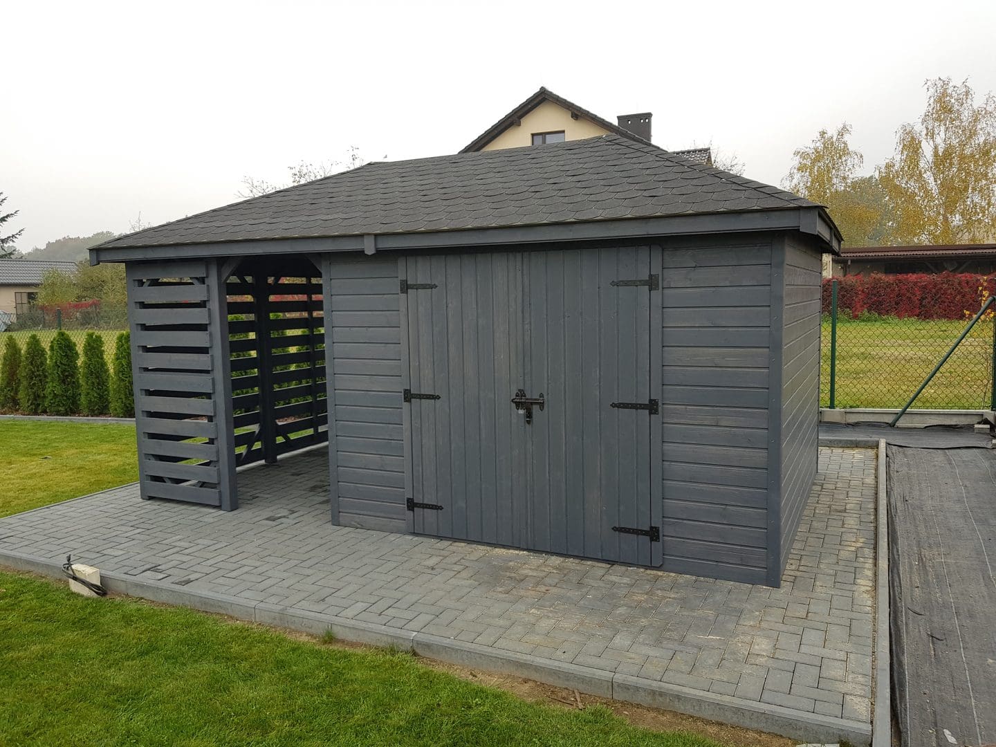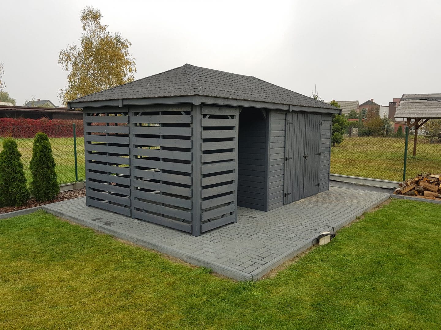 Dziękujemy za zainteresowanie naszą firmą. Mamy do zaoferowania domek narzędziowy z drewutnią o wymiarach – Pomieszczenie gospodarcze 3m x 3m + drewutnia 3m x 2m wykonaną z drewna sosnowego ( bez podłogi ). Domek posiada wentylacje między ścianami a dachem. Wszystkie elementy drewniane są staranie szlifowanę oraz frezowane. W trosce o klienta oferujemy drewno suszone komorowo. Zapraszamy do zapoznania się z naszą ofertą, a przekonacie się, Państwo że to dobry wybór. Wykonujemy konstrukcje pod wymiar Klienta , domek można konfigurować w dowolny sposób. Udzielamy pisemnej gwarancji.