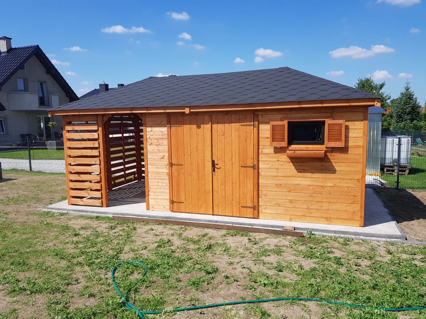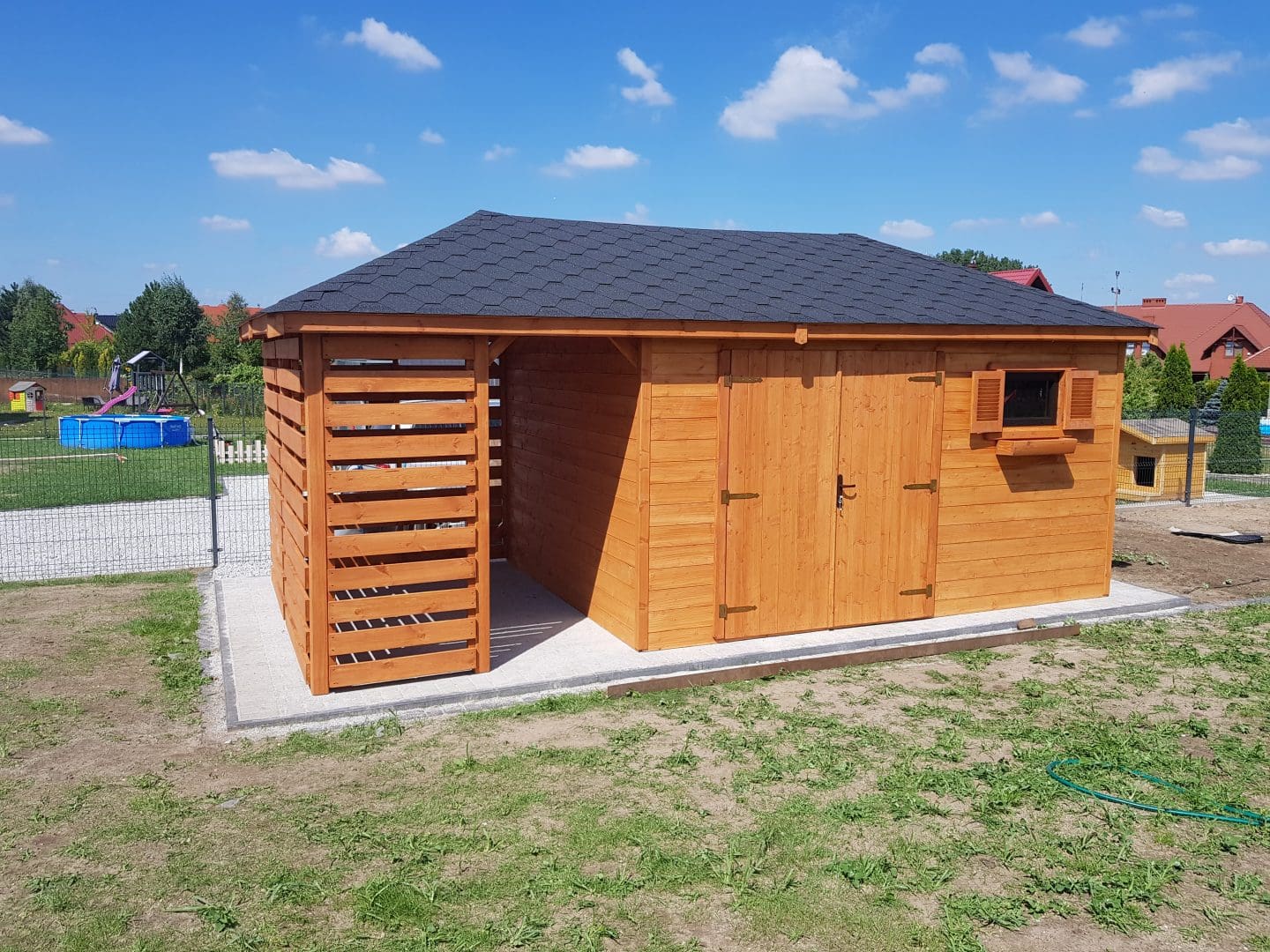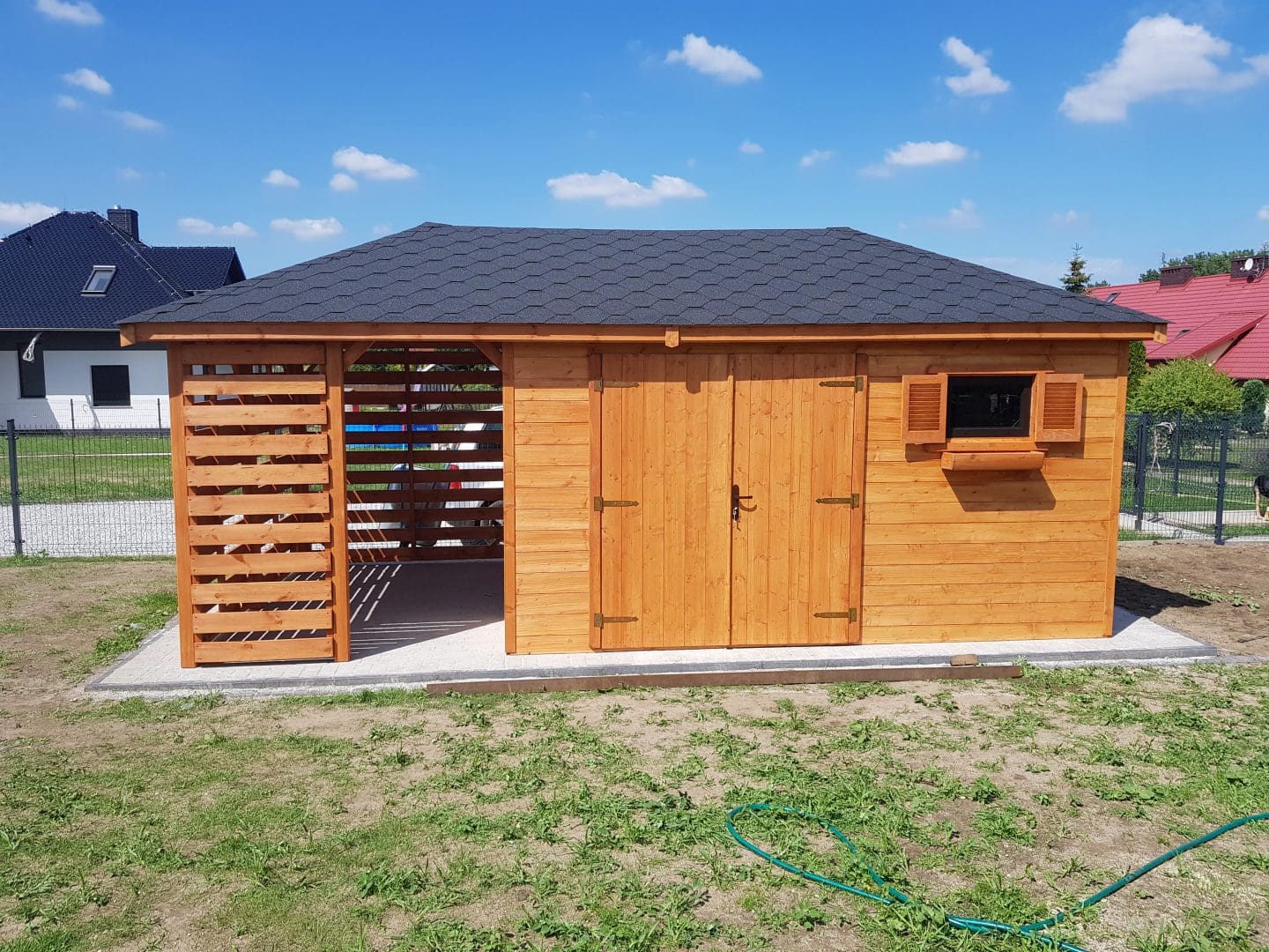 Dziękujemy za zainteresowanie naszą firmą. Mamy do zaoferowania domek narzędziowy z drewutnią o wymiarach – Pomieszczenie gospodarcze 3m x 4m + drewutnia 3m x 2m wykonaną z drewna sosnowego ( bez podłogi ). Domek posiada wentylacje między ścianami a dachem. Wszystkie elementy drewniane są staranie szlifowanę oraz frezowane. W trosce o klienta oferujemy drewno suszone komorowo. Zapraszamy do zapoznania się z naszą ofertą, a przekonacie się, Państwo że to dobry wybór. Wykonujemy konstrukcje pod wymiar Klienta , domek można konfigurować w dowolny sposób. Udzielamy pisemnej gwarancji.
