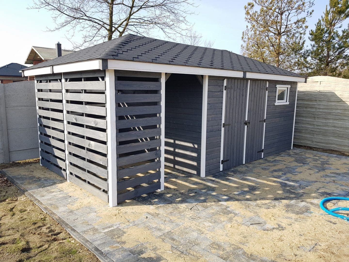 Dziękujemy za zainteresowanie naszą firmą. Mamy do zaoferowania domek narzędziowy z drewutnią o wymiarach – Pomieszczenie gospodarcze 3m x 4m + drewutnia 3m x 2m wykonaną z drewna sosnowego ( bez podłogi ). Domek posiada wentylacje między ścianami a dachem. Wszystkie elementy drewniane są staranie szlifowanę oraz frezowane. W trosce o klienta oferujemy drewno suszone komorowo. Zapraszamy do zapoznania się z naszą ofertą, a przekonacie się, Państwo że to dobry wybór. Wykonujemy konstrukcje pod wymiar Klienta , domek można konfigurować w dowolny sposób. Udzielamy pisemnej gwarancji.