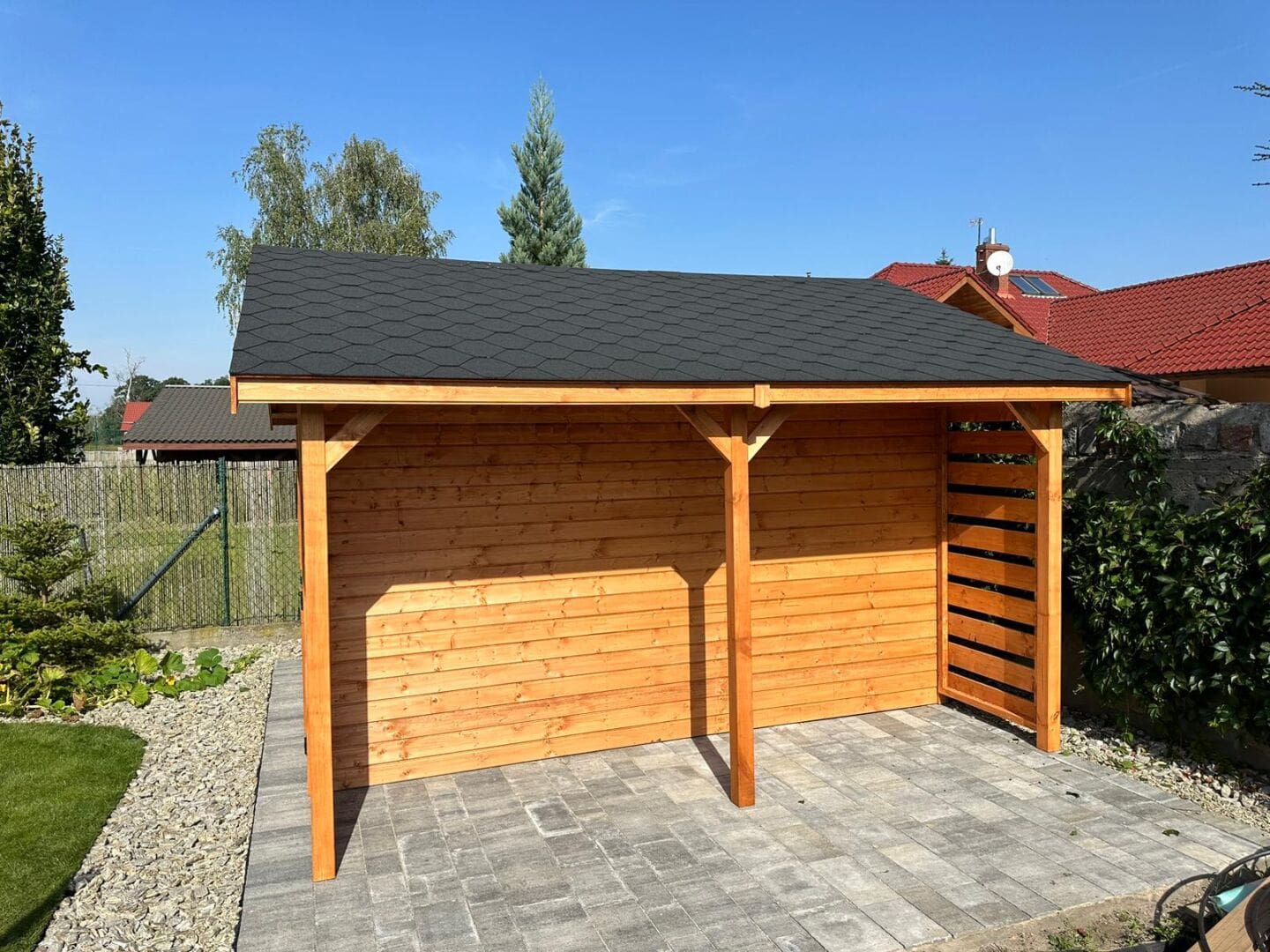 - Ścianki drewutni wykonane z deski