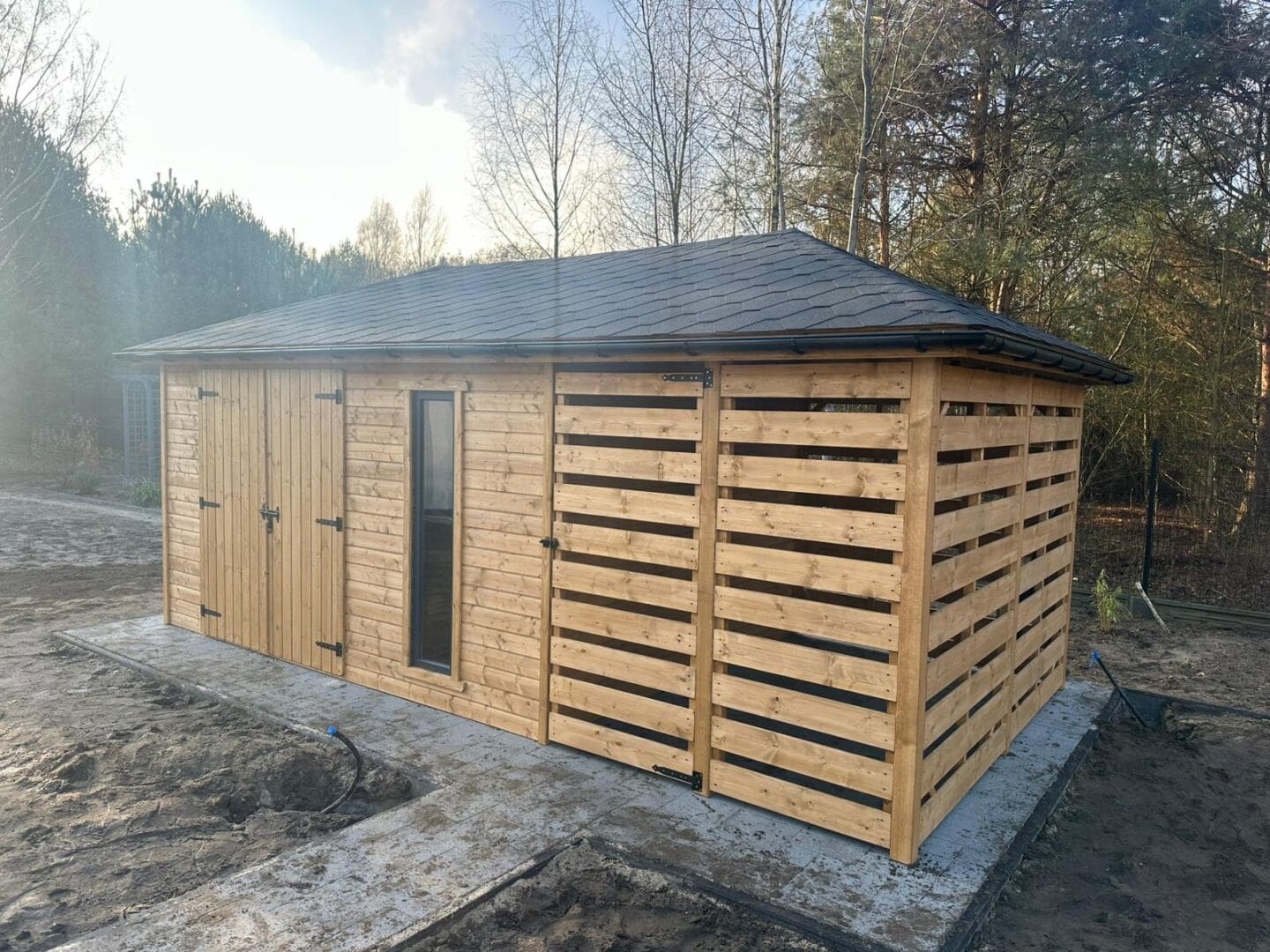 • Ścianki drewutni wykonane z deski