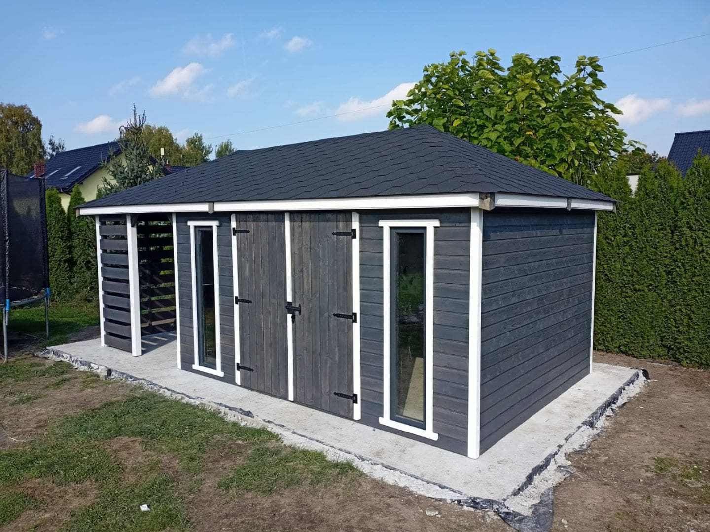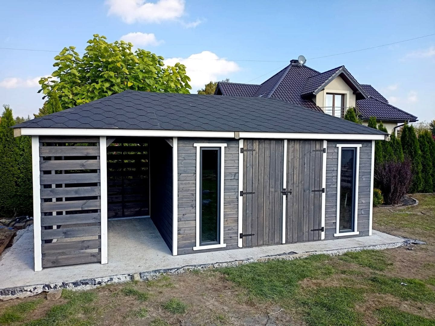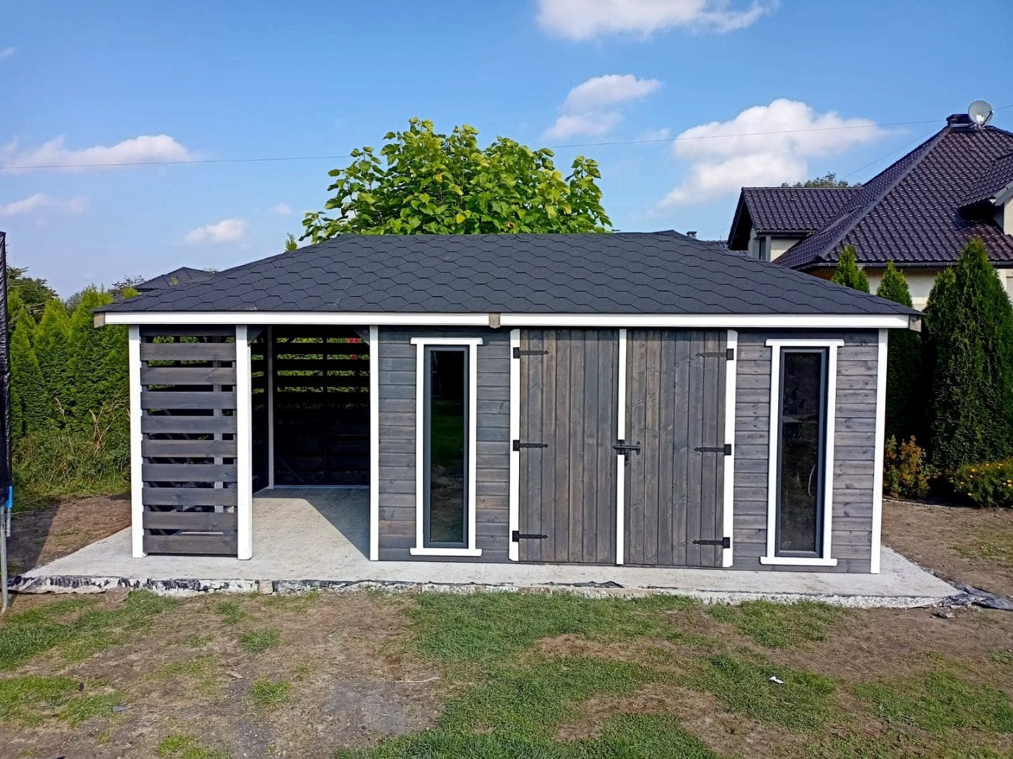 Dziękujemy za zainteresowanie naszą firmą. Mamy do zaoferowania domek narzędziowy z drewutnią o wymiarach – Pomieszczenie gospodarcze 3m x 4m + drewutnia 3m x 2m wykonaną z drewna świerkowego ( bez podłogi ). Domek posiada wentylacje między ścianami a dachem. Wszystkie elementy drewniane są staranie szlifowane oraz frezowane. W trosce o klienta oferujemy drewno suszone komorowo. Zapraszamy do zapoznania się z naszą ofertą, a przekonacie się, Państwo że to dobry wybór. Wykonujemy konstrukcje pod wymiar Klienta , domek można konfigurować w dowolny sposób. Udzielamy pisemnej gwarancji !!