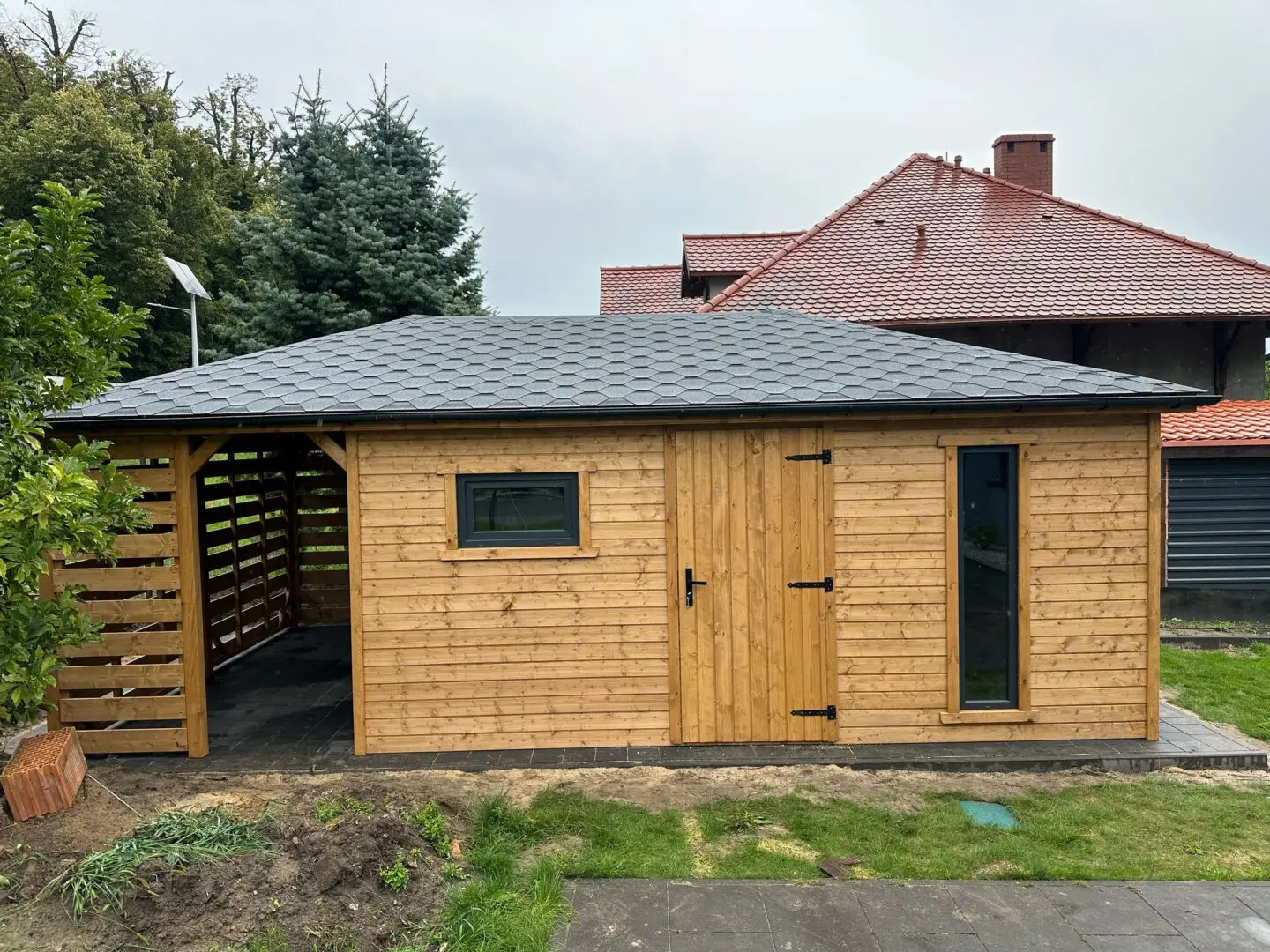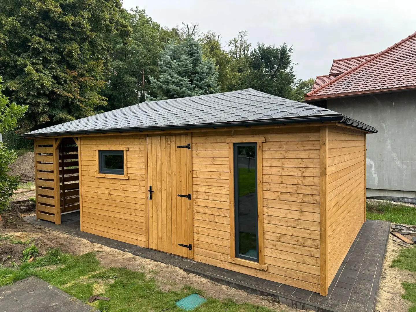 Dziękujemy za zainteresowanie naszą firmą. Mamy do zaoferowania domek narzędziowy z drewutnią o wymiarach – Pomieszczenie gospodarcze 4m x 4m + drewutnia 4m x 2m wykonaną z drewna świerkowego ( bez podłogi ). Domek posiada wentylacje między ścianami a dachem. Wszystkie elementy drewniane są staranie szlifowane oraz frezowane. W trosce o klienta oferujemy drewno suszone komorowo. Zapraszamy do zapoznania się z naszą ofertą, a przekonacie się, Państwo że to dobry wybór. Wykonujemy konstrukcje pod wymiar Klienta , domek można konfigurować w dowolny sposób. Udzielamy pisemnej gwarancji !!