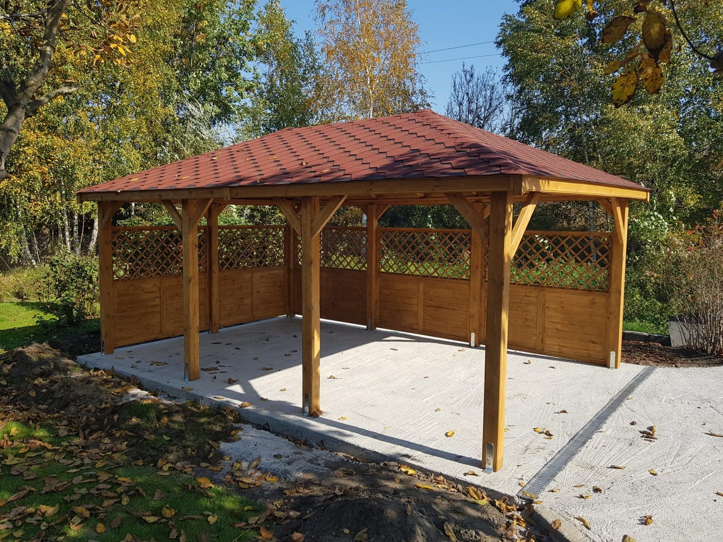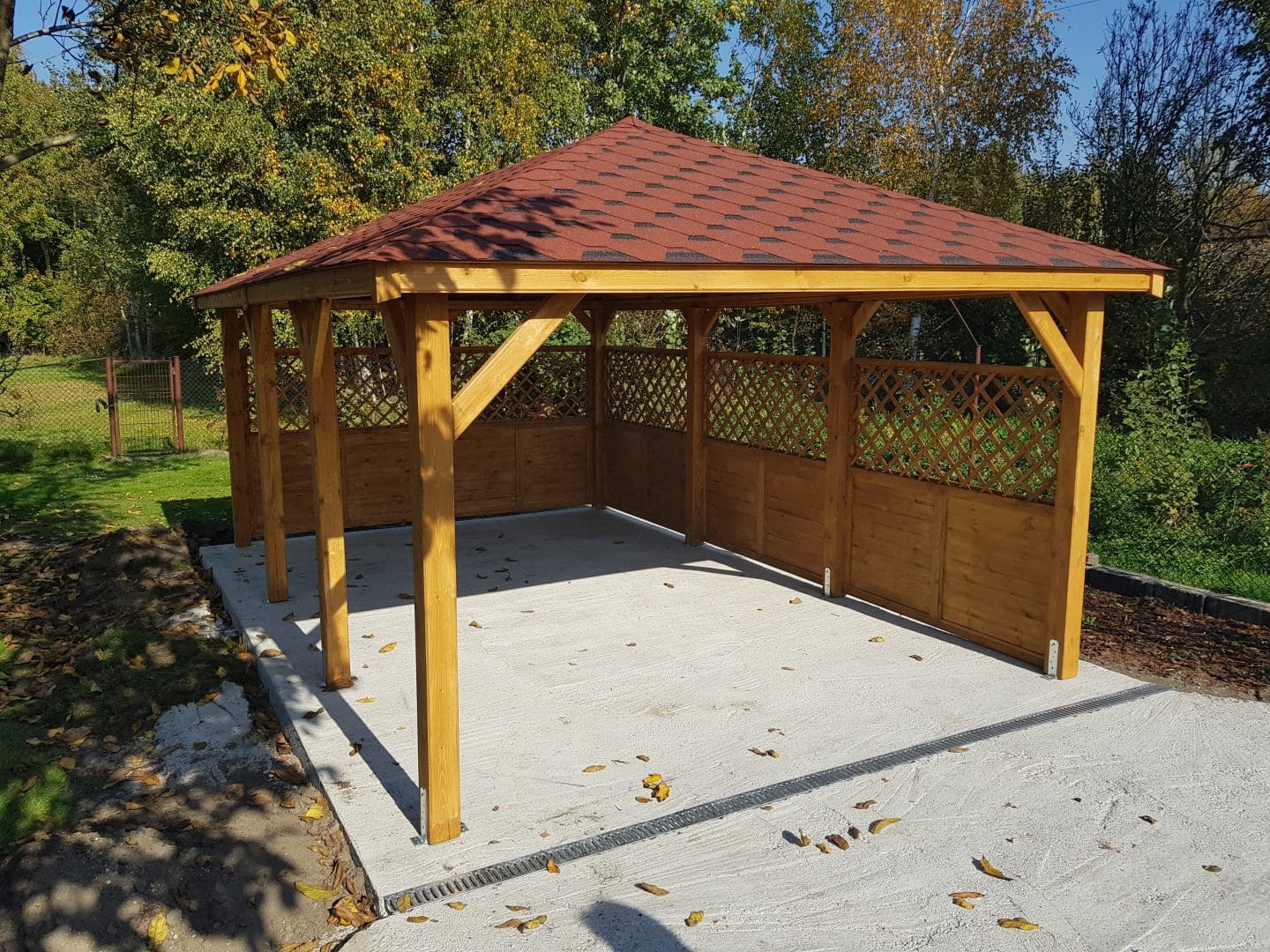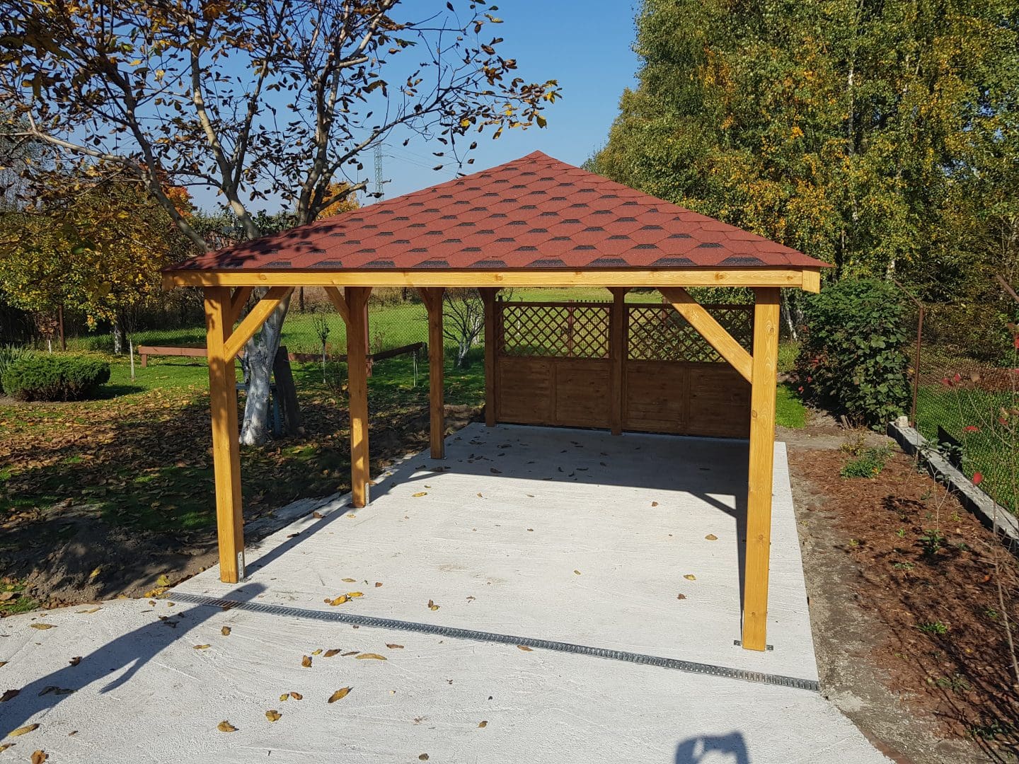 Dziękujemy za zainteresowanie naszą firmą. Mamy do zaoferowania wiatę samochodową o wymiarach 3,5m x 5,5m wykonaną z drewna sosnowego. Wszystkie elementy drewniane są staranie szlifowane oraz frezowane. W trosce o klienta oferujemy drewno suszone komorowo. Zapraszamy do zapoznania się z naszą ofertą, a przekonacie się, Państwo że to dobry wybór. Wykonujemy konstrukcje pod wymiar Klienta , wiatę można konfigurować w dowolny sposób. Udzielamy pisemnej gwarancji.