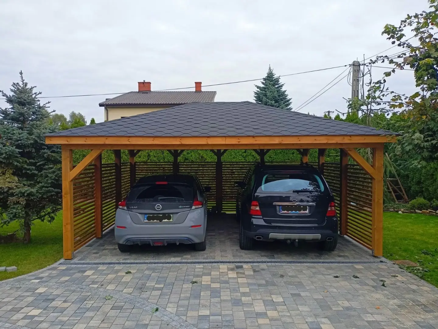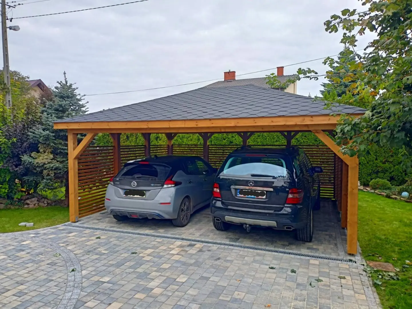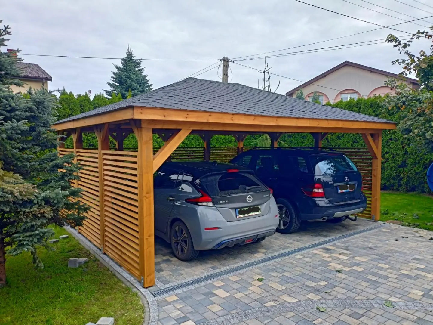 Dziękujemy za zainteresowanie naszą firmą. Mamy do zaoferowania wiatę samochodową o wymiarach 5m x 6m wykonaną z drewna świerkowo-sosnowego. Wszystkie elementy drewniane są staranie szlifowane oraz frezowane. W trosce o klienta oferujemy drewno suszone komorowo. Zapraszamy do zapoznania się z naszą ofertą, a przekonacie się, Państwo że to dobry wybór. Wykonujemy konstrukcje pod wymiar Klienta , wiatę można konfigurować w dowolny sposób. Udzielamy pisemnej gwarancji.